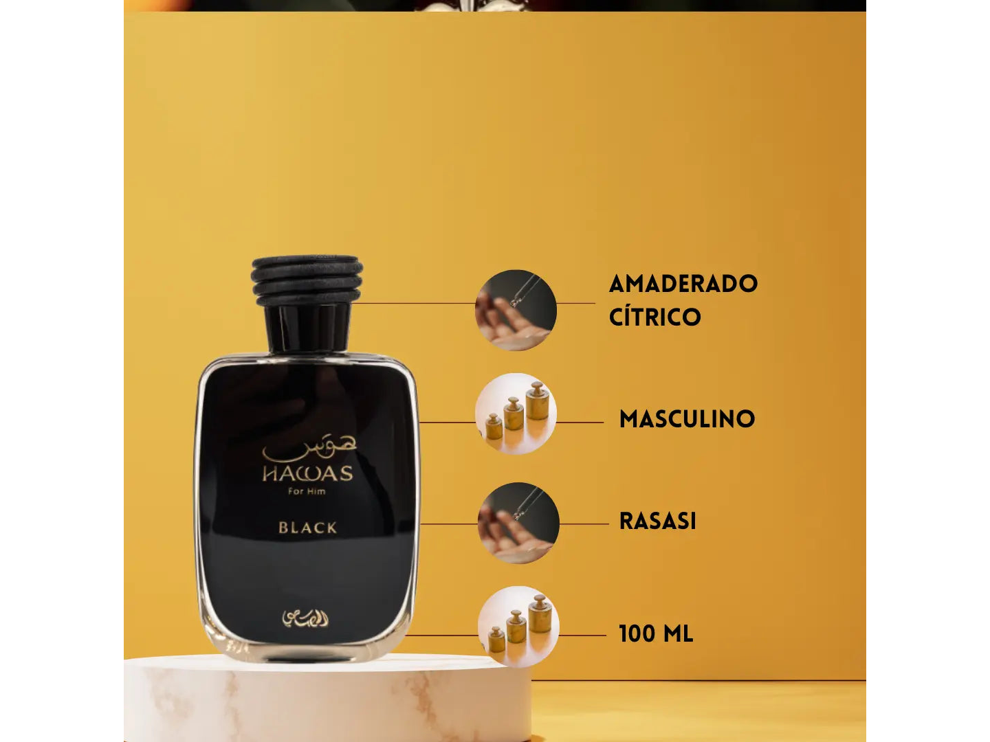 Hawas Black de Rasasi es una fragancia de la familia olfativa Chipre para Hombres. Esta fragancia es nueva, se lanzó en 2024. Las Notas de Salida son piña, pomelo, bergamota; las Notas de Corazón son pachulí, cedro, jazmín; las Notas de Fondo son musgo de roble, notas amaderadas y ámbar. Hawas Black es una fragancia que captura la esencia de la masculinidad audaz y seductora. La jugosa piña y el pomelo vibrante se entrelazan con la frescura de la bergamota, creando una apertura electrizante que despierta la curiosidad. A medida que evoluciona, el pachulí y el cedro aportan una profundidad terrosa y robusta, mientras que el jazmín añade un toque de sofisticación inigualable. La base de musgo de roble y ámbar envuelve la piel con una calidez envolvente, dejando un rastro intrigante. Cada nota se fusiona en un abrazo irresistible que invita a ser explorado, convirtiendo cada momento en una experiencia apasionante. Hawas Black no solo se lleva puesto, se vive!!!