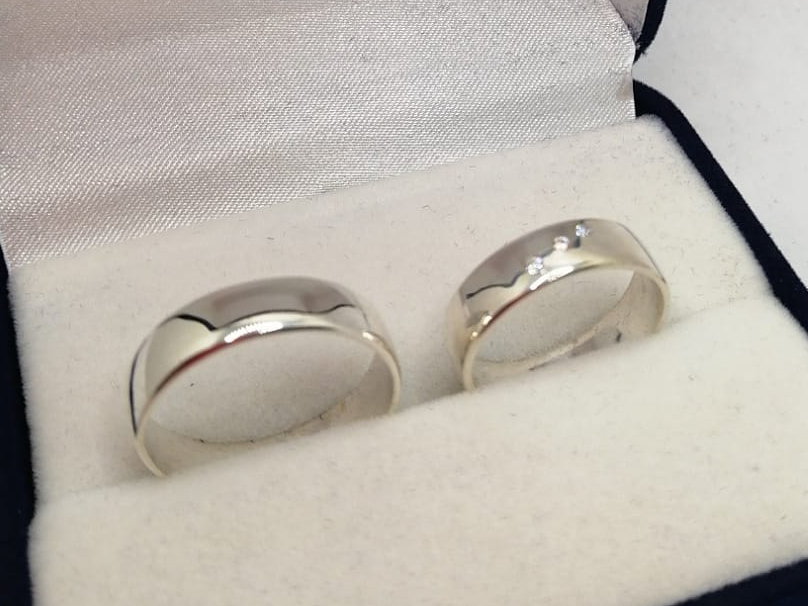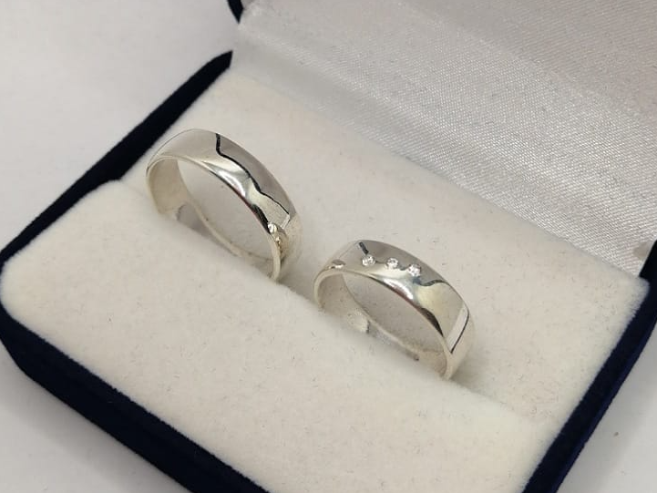 Alianzas Plata 925, 3 circonias 5.5mm de ancho bombe y grabado de obsequio.