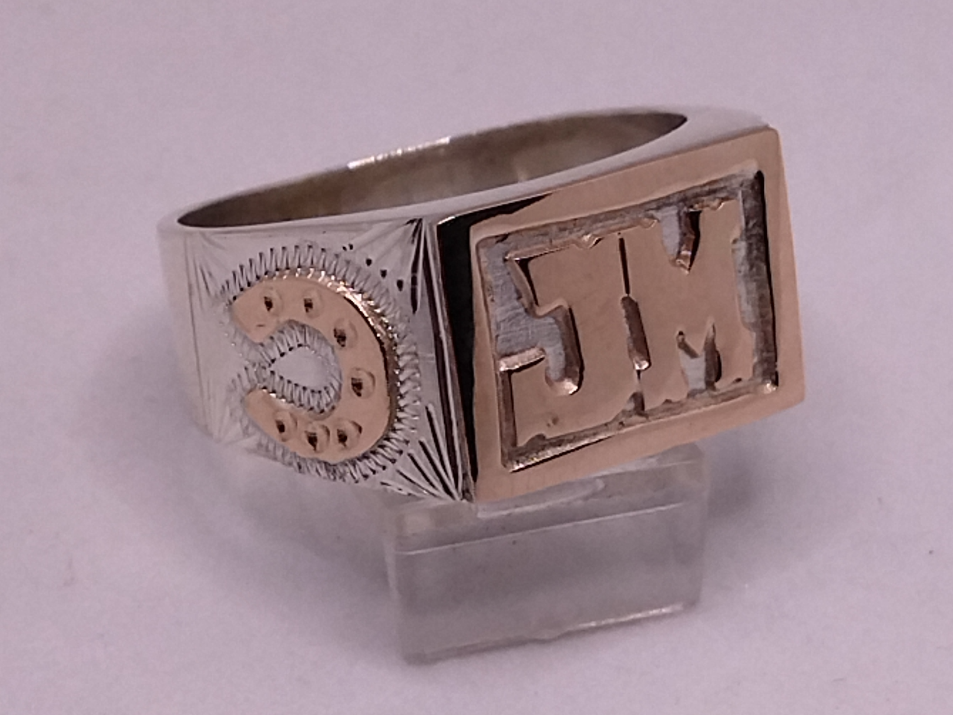 Anillo sello de hombre 12 x 16 mm Completo herradura, marco y letras en oro 9k Compartir por WhatsApp Copiar enlace Anillo sello de hombre 12 x 16 mm. Con marco, apliques herraduras e iniciales en oro.$9.990 Observaciones 0 / 150