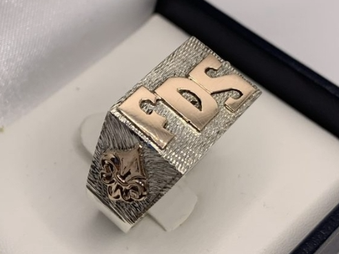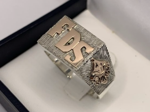 Anillo sello Plata hombre 12 x 16 mm con 3 iniciales en oro con apliques Compartir por WhatsApp Copiar enlace Anillo sello plata 12 x 16 mm. Con 3 iniciales en ORO 9k. Con apliques en Los costados$9.990 Observaciones 0 / 150