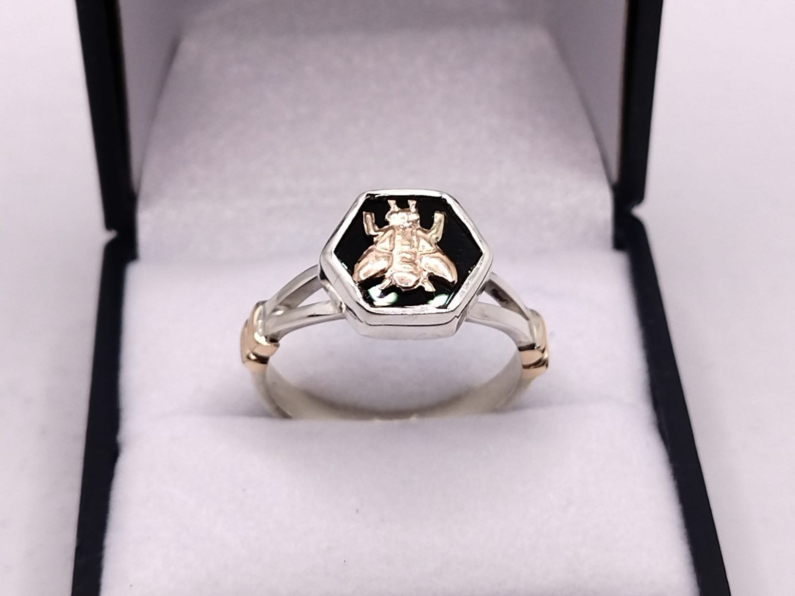 Anillo Maestra plata ,onix y oro 9k. Panal con apliques en oro Compartir por WhatsApp Copiar enlace Anillo Maestra plata ,onix y oro 9k. Panal con apliques en oro exagonal modelo hojitas$7.900 Observaciones 0 / 150