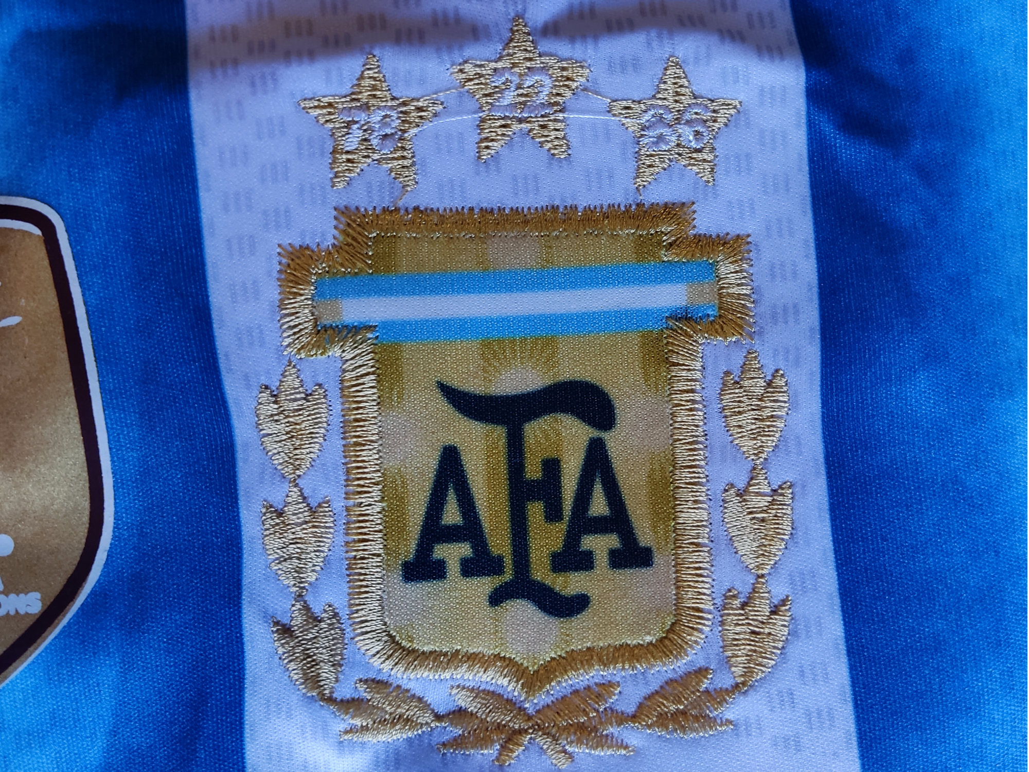 Camiseta Argentina 3 Estrellas Adulto Compartir por WhatsApp Copiar enlace 2 unidades en stock ✅Confeccionadas con tela aereada; ligera, fresca y respirable. ✅Logos bordados ✅Logo Champions Sublimado$30.000 Observaciones 0 / 150
