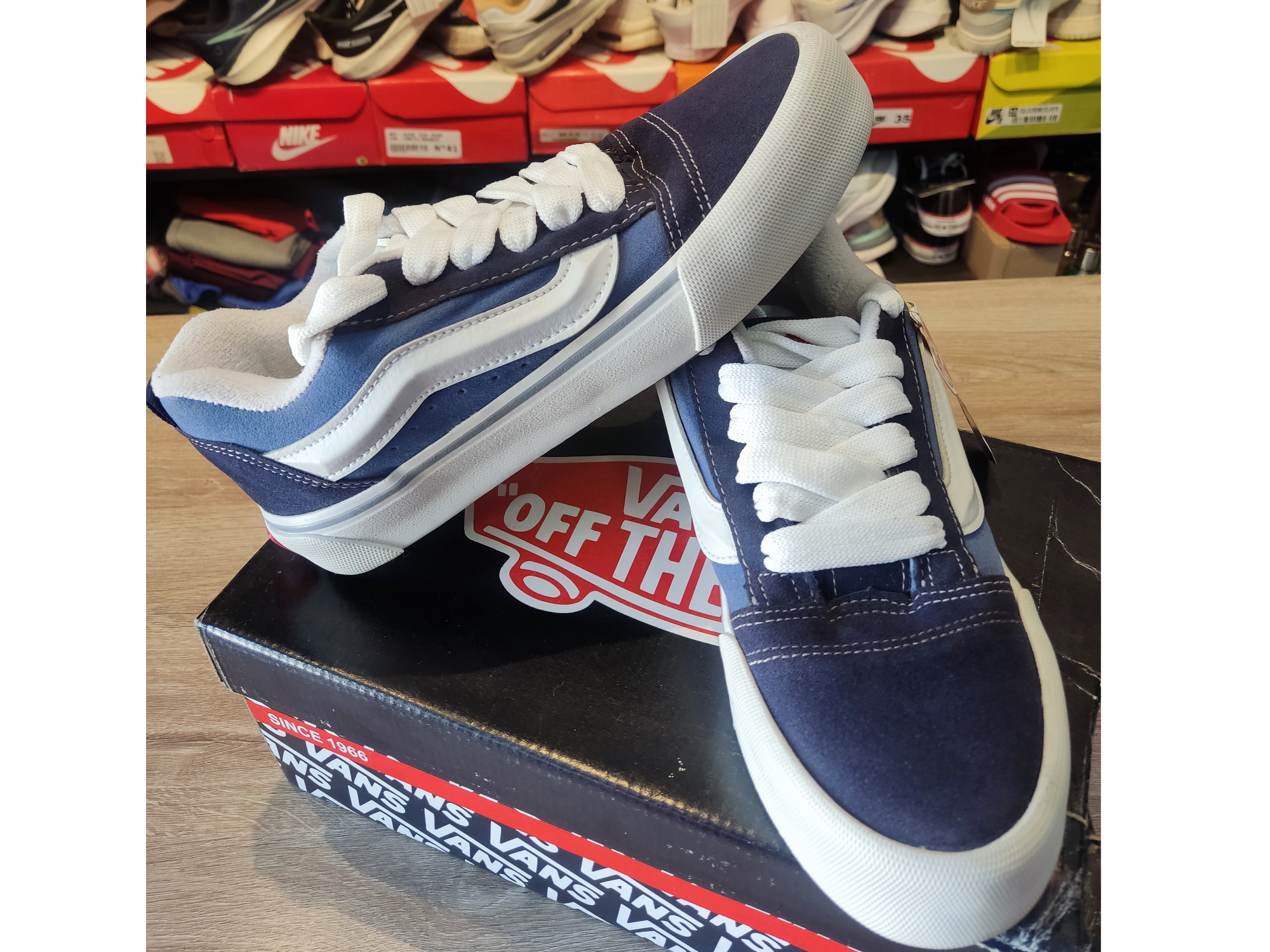 Vans KNU Skool - Marino Compartir por WhatsApp Copiar enlace ¡¡¡COMPRA MINIMA DE 6 PARES, PUEDEN SER MODELOS Y TALLES SURTIDOS!!! Detalle lateral en 3D, lengua acolchonada D50, raya lateral texturizada. Suela de goma blanca y gruesa, punteras reforzadas. Cordones soft plus. Vans KNU Premium - Planta Vulcanizada - Etiqueta *Vans* - Plantilla con gel 5mm - Presentación en caja y papel de seda (Consultar stock) PRECIO POR MENOR $45000 Presentaciones Seleccioná las opciones que quieras.Talle 34 PRECIO POR MENOR $45000 Sin stock $25.600Talle 35 PRECIO POR MENOR $45000 Sin stock $25.600Talle 36 PRECIO POR MENOR $45000 Sin stock $25.600Talle 37 PRECIO POR MENOR $45000 Última unidad $25.600Talle 38 PRECIO POR MENOR $45000 Última unidad $25.600Talle 39 PRECIO POR MENOR $45000 Sin stock $25.600 Observaciones 0 / 150