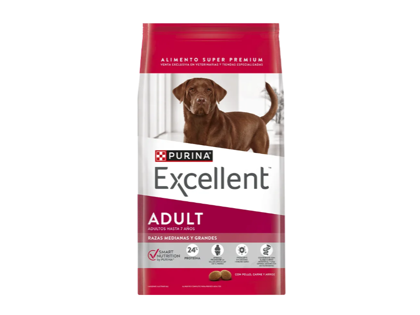 ExcellentAlimento súper premium basados en el sistema smart nutrition by Purina. Nutrición de excelencia. Beneficios comprobados. Fórmulas únicas para sus necediades. Presentaciones Seleccioná las opciones que quieras.Excellent Adulto Fórmula x 20 kg$58.500Excellent Adulto Raza Mediana y Grande x 20 kg$73.500 Observaciones 0 / 150 Encontrá productos relacionados EN PROMO (21)