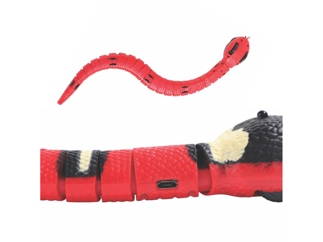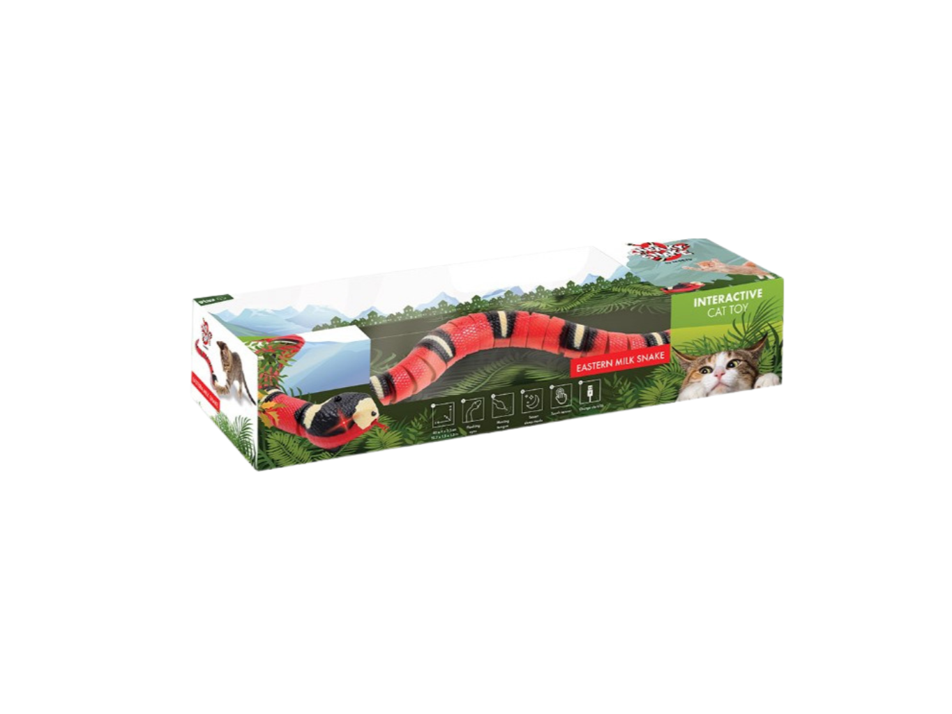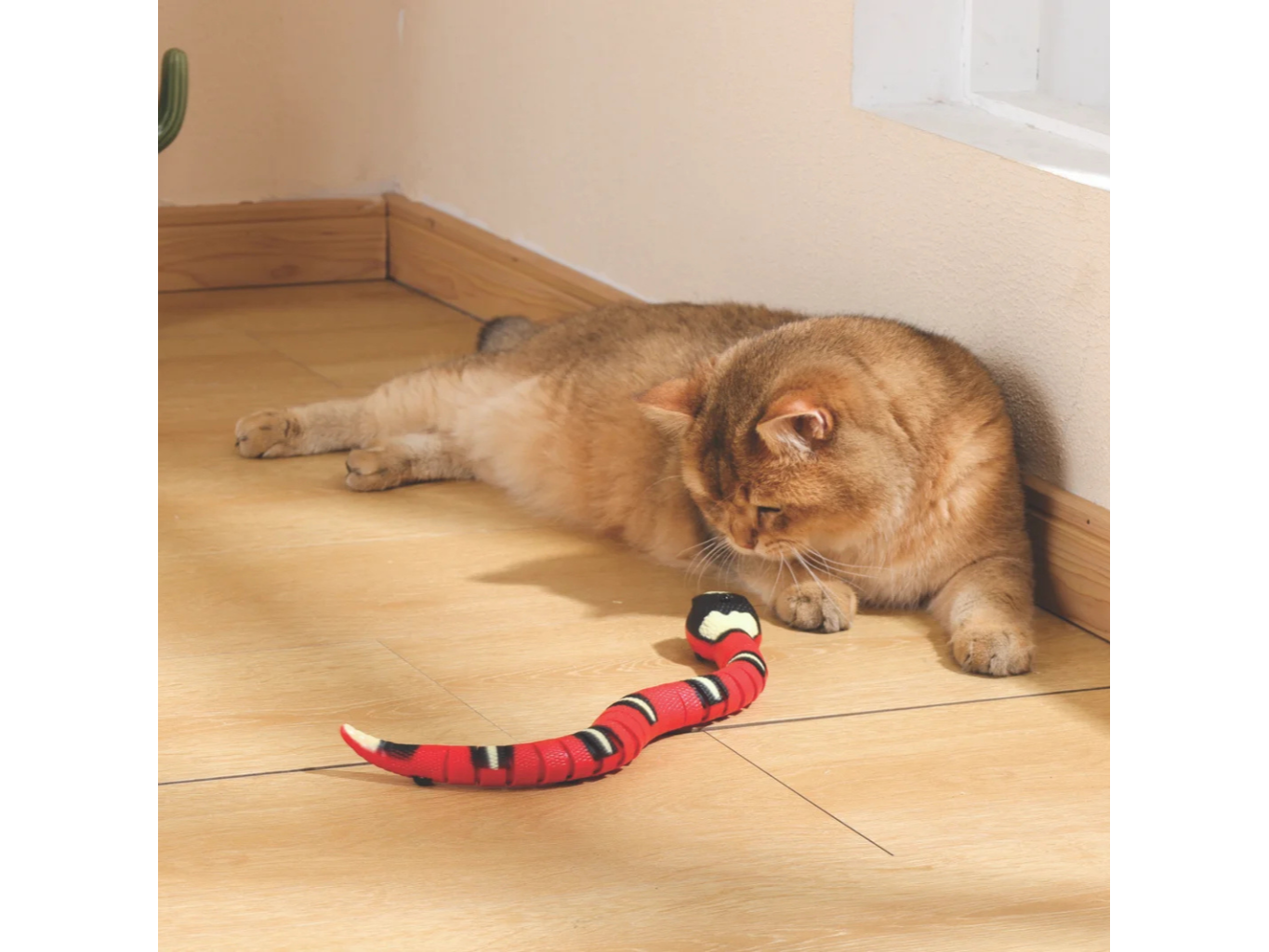 Juguete electrónico en forma de serpiente, con movimientos realistas que se activan automáticamente. Estimula el instinto cazador del gato gracias a su desplazamiento impredecible y cuerpo flexible. Fabricado en plástico resistente a mordidas y arañazos, con carga USB. Ideal para fomentar actividad física y reducir el aburrimiento en gatos de interior.