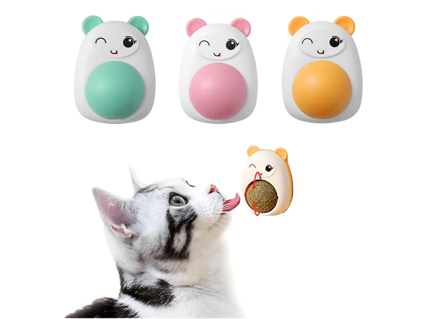 Esferas compactas de catnip natural prensado, diseñadas con base adhesiva para fijar en paredes, muebles o rascadores. Al ser lamidas o mordisqueadas, liberan gradualmente su aroma relajante y estimulante. Favorecen la reducción de estrés y el entretenimiento natural en gatos, sin generar residuos. Diferentes modelos.