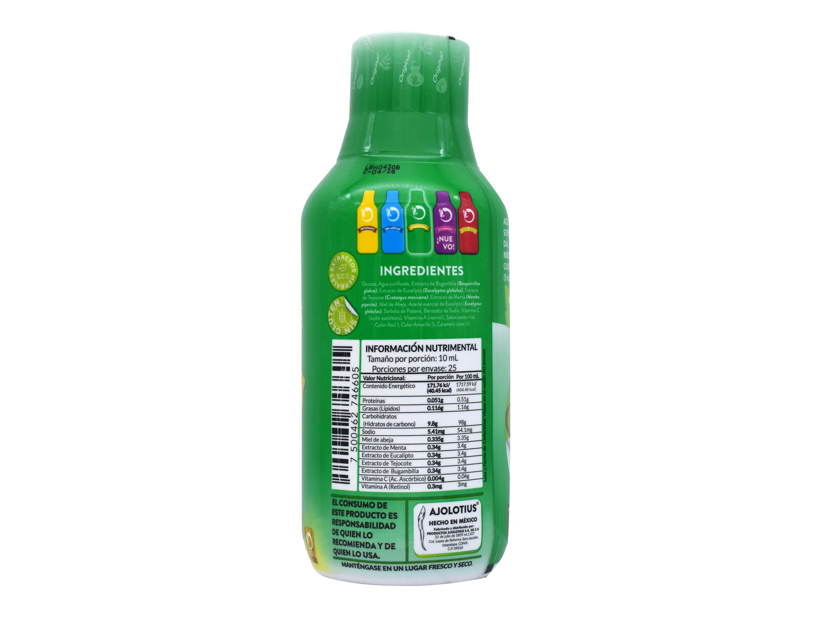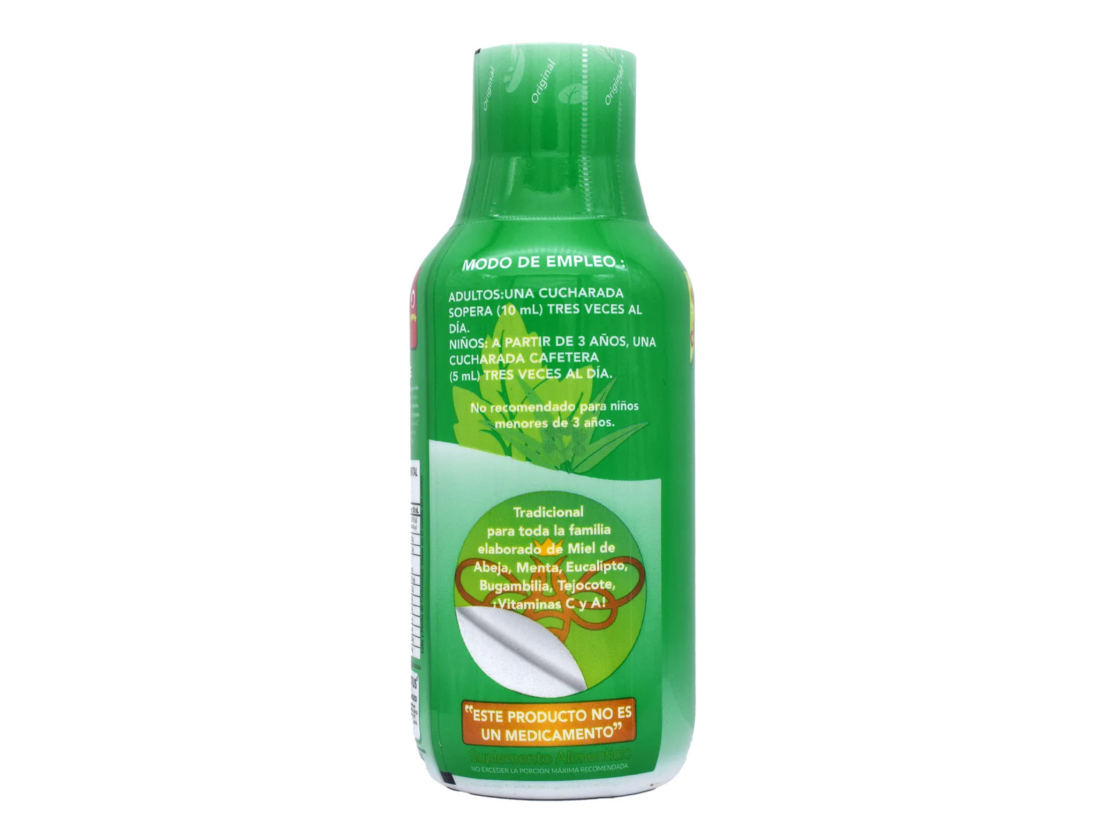 ingredientes naturales como miel, menta, eucalipto, bugambilia, tejocote y vitaminas A y C. Esta combinación está