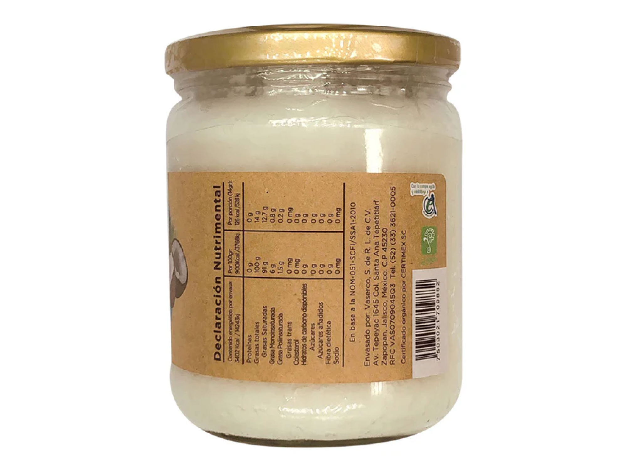 de la pulpa fresca del coco, lo que conserva sus nutrientes y sabor. Es ideal para cocinar, ya que resiste altas