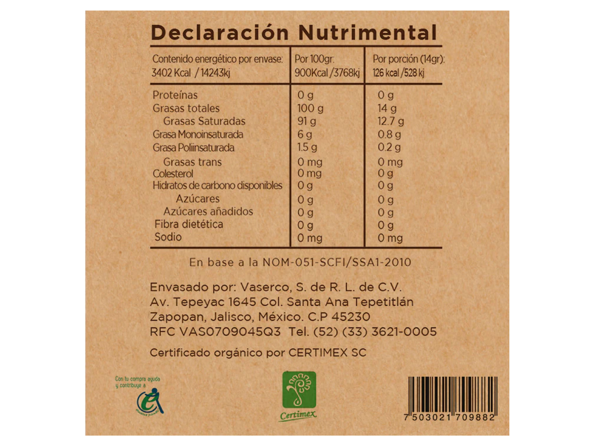 Certificaciones: USDA Organic, Orgánico México, MX-BIO-104