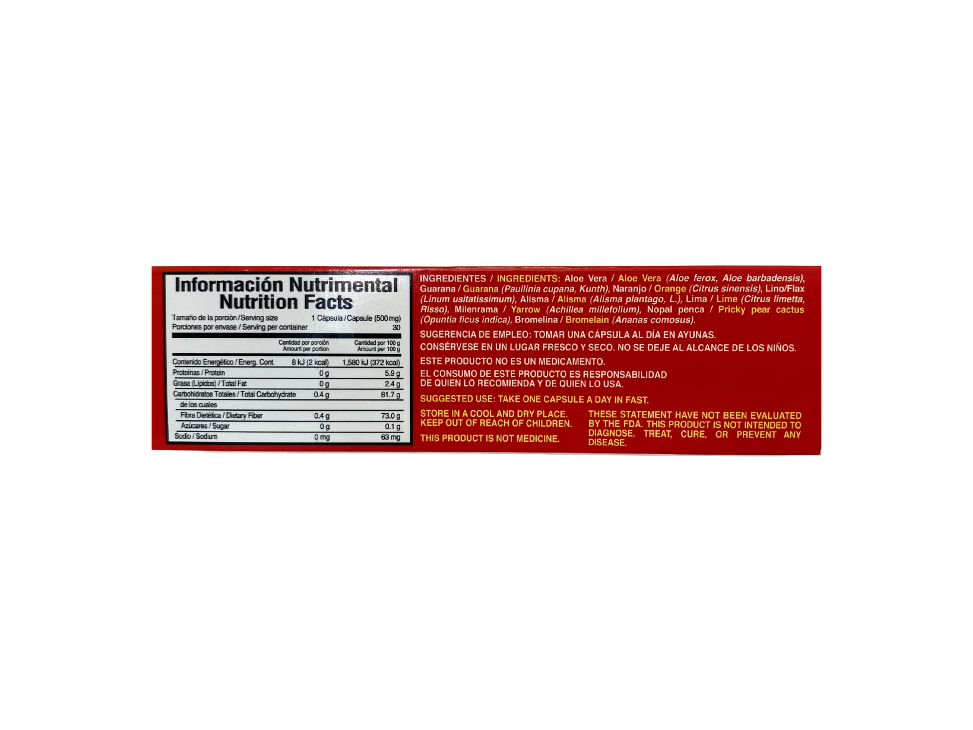 Modo de uso: Tomar 1 cápsula al día en ayunas con 240 ml de agua, leche o jugo