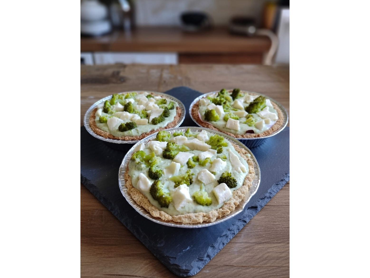 El relleno combina brócoli natural mixeado con queso crema y huevos, sobre una capa de jamón, finalizado con queso cremoso y trozos de brócoli fresco. Utilizamos sal marina como parte de nuestra selección de ingredientes.