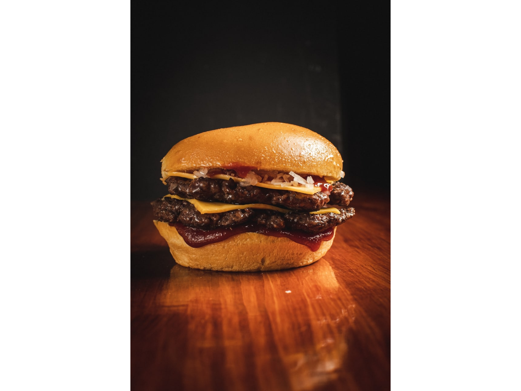pan de papa, medallón de roast beef, cheddar, ketchup, pepinillos, mostaza, cebollita. sale con papas