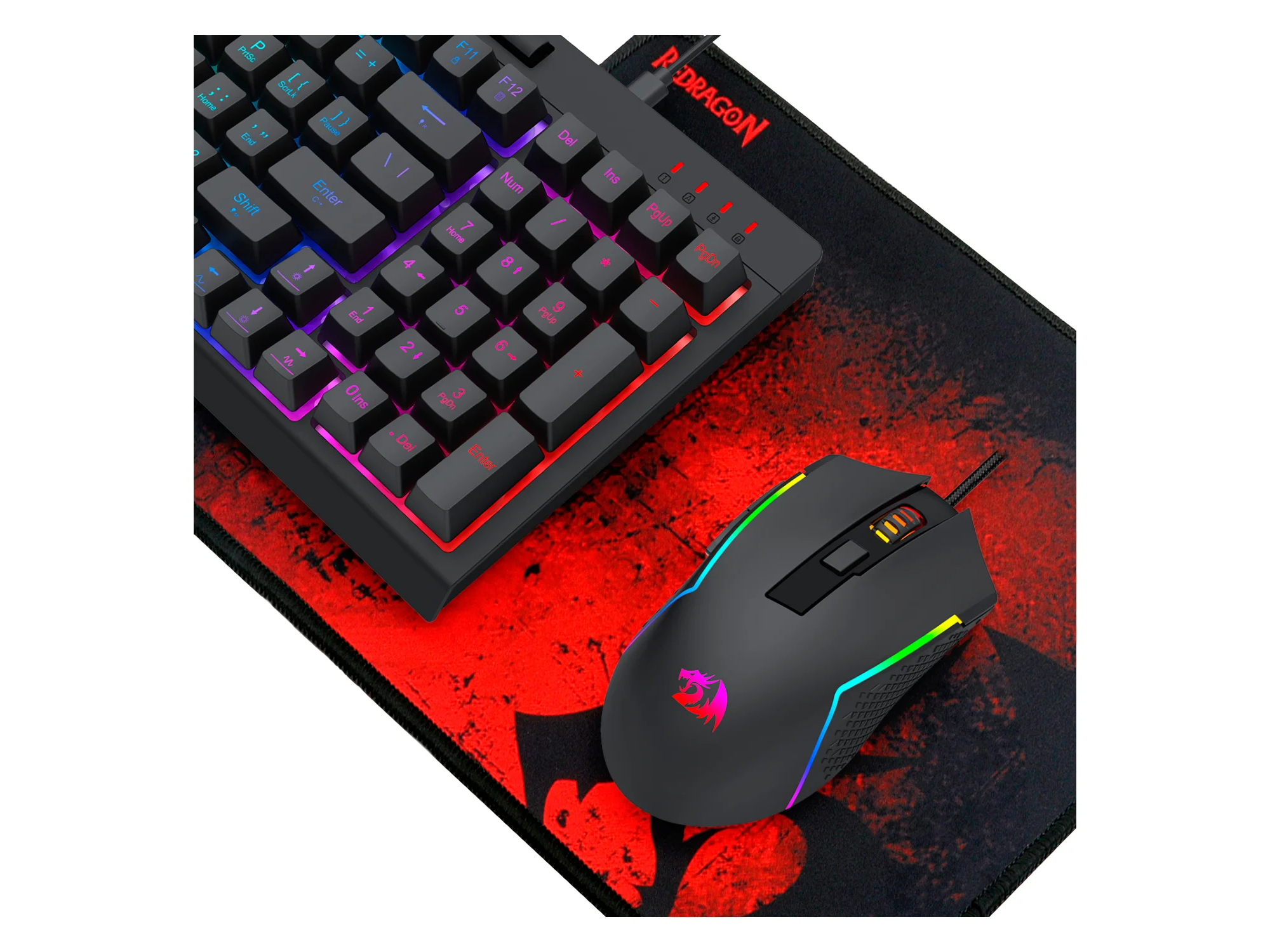 El kit definitivo para gamers. Incluye el teclado mecánico Pollux K628 (75%), el mouse Griffin M607 (7200 DPI), los auriculares Hylas H260 y la alfombrilla Archelon P001.