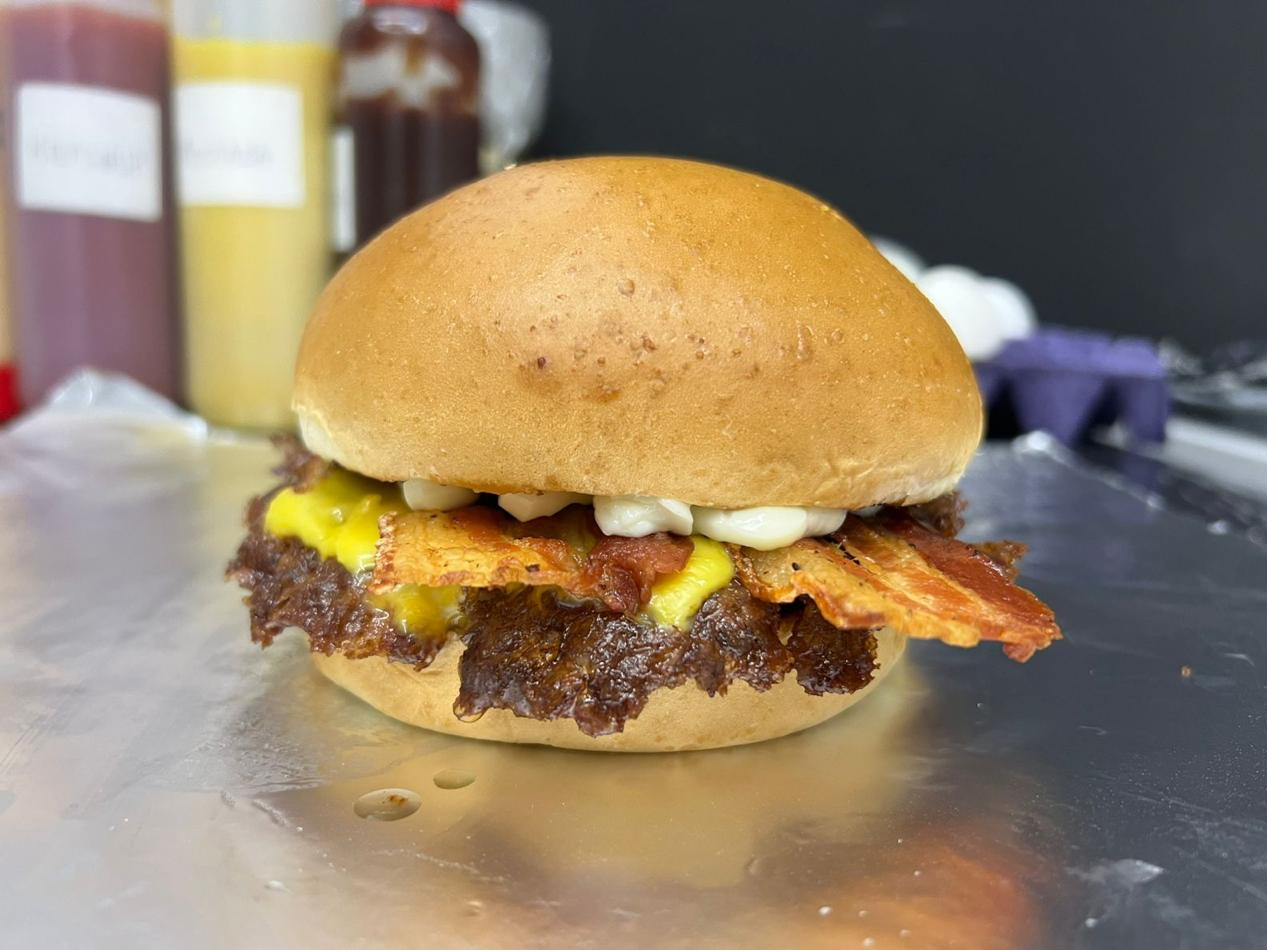 Burger Cheese BaconPan de papa, Blen de carne Smash, Fetas de Cheddar, Bacon Ahumado, Mayonesa Presentaciones Seleccioná una opción.Burger Cheese Bacon Simple Burger Cheese Bacon Simple 120 gr. de Carne Smash $10.900Burger Cheese Bacon Doble Burger Cheese Bacon Simple 240 gr. de Carne Smash $12.900Burger Cheese Bacon Triple Burguer Cheese Bacon 360 gr. de Carne Smash $13.900 Observaciones 0 / 150