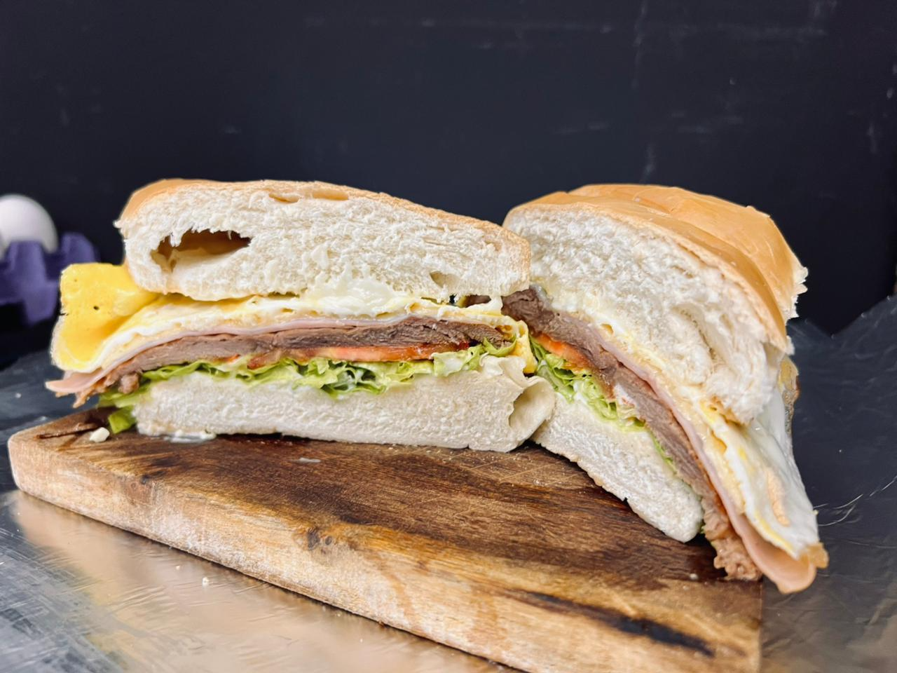 Lomo Especial Cba.Pan de Lomo, Bife de Lomo Angus, Lechuga, Tomate, Jamón, Queso, Huevo, Mayonesa, y Papas Fritas. Presentaciones Seleccioná una opción.Lomo Especial Cba. Simple Pan de Lomo, Bife de Lomo Angus de 170 gr., Lechuga, Tomate, Jamón, Queso, Huevo, Mayonesa y Papas Fritas. $17.500Lomo Especial Cba. Doble Pan de Lomo, Bife de Lomo Angus de 340 gr., Lechuga, Tomate, Jamón, Queso, Huevo, Mayonesa y Papas Fritas. $19.900 Observaciones 0 / 150