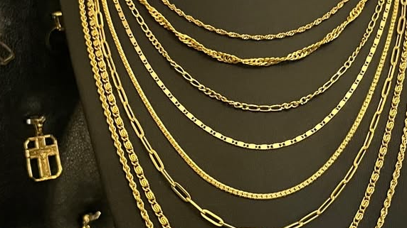 Cadenas Compartir por WhatsApp Copiar enlace Finas Gruesas Finas (5) Enrollada $34.000 Singapur $34.000 Figaro $32.000 Tourbillon $34.000 Figaro Mediana $34.000 Gruesas (2) Punto Peruano $50.000 Cubana $42.000