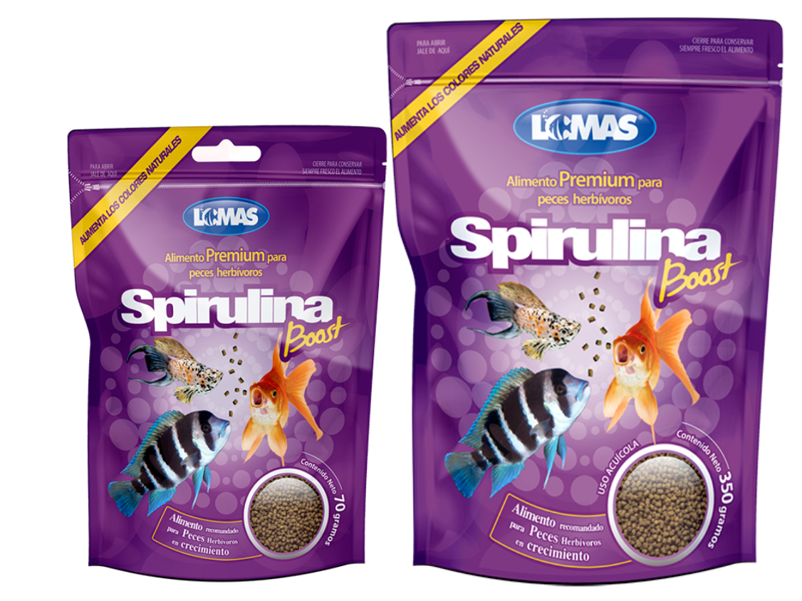 El alimento Premium para peces herbívoros Spirulina Boost, es un alimento vegetal para peces herbívoros formulado con un alto contenido de alga espirulina para mejorar el color y estimular el crecimiento adicionado con vitamina C estabilizada y un suplemento multivitamínico, Spirulina Boost acentúa el color y promueve el crecimiento de los peces japoneses, cíclidos africanos y peces vivíparos (molies, platties y espadas).