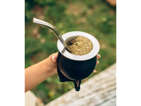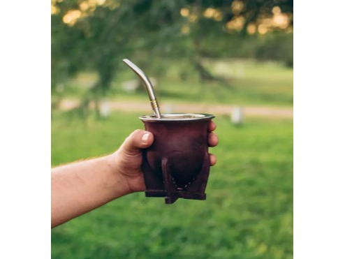 Este mate está elaborado a partir de una fruta natural llamada porongo, lo que lo convierte en una pieza única en forma, tamaño y textura. Ningún modelo es igual a otro: la curvatura, el cuero y los detalles pueden variar, haciendo que cada mate sea verdaderamente especial.