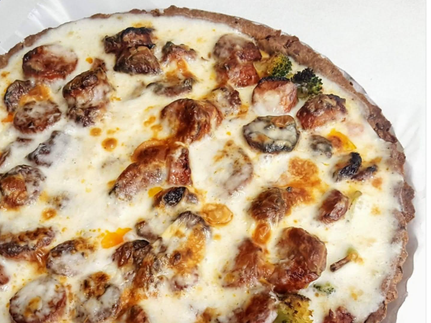 Tarta BBQ (4porc) Compartir por WhatsApp Copiar enlace tarta en masa 100% integral con semillas, rellena de zanahorias a la barbacoa y brocoli, con huevos de campo y queso gratinado. 1300 aprox$16.000 Observaciones 0 / 150