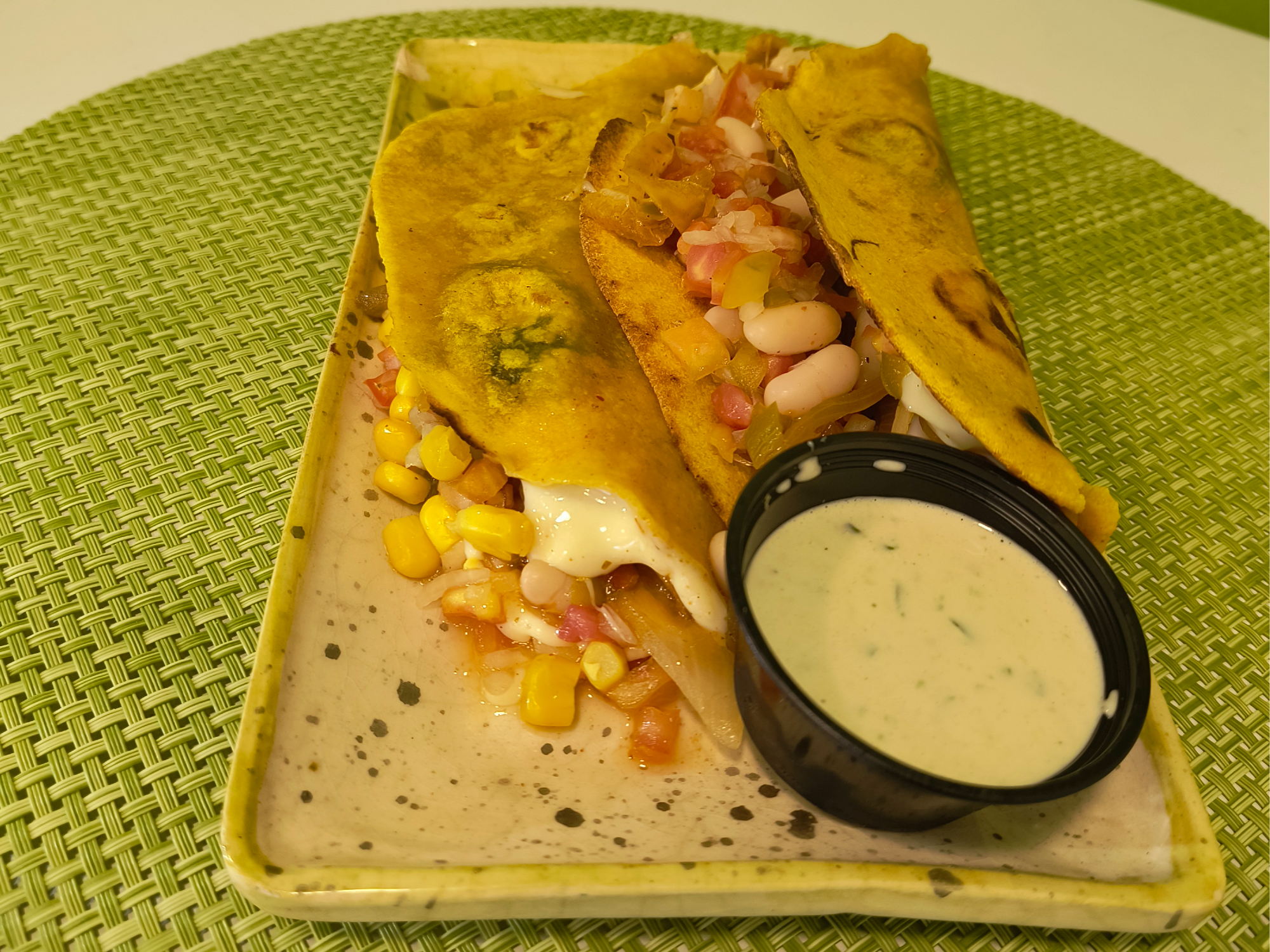 Quesadillas mexicanastortillas de trigo y maiz rellenas de pate de frijoles, rajas, granos de choclo, pico de gallo, queso derretido y salsa sour cream *2unid* 500 gr aprox$8.000 Observaciones 0 / 150 Encontrá productos relacionados MENU INDIVIDUAL (1)