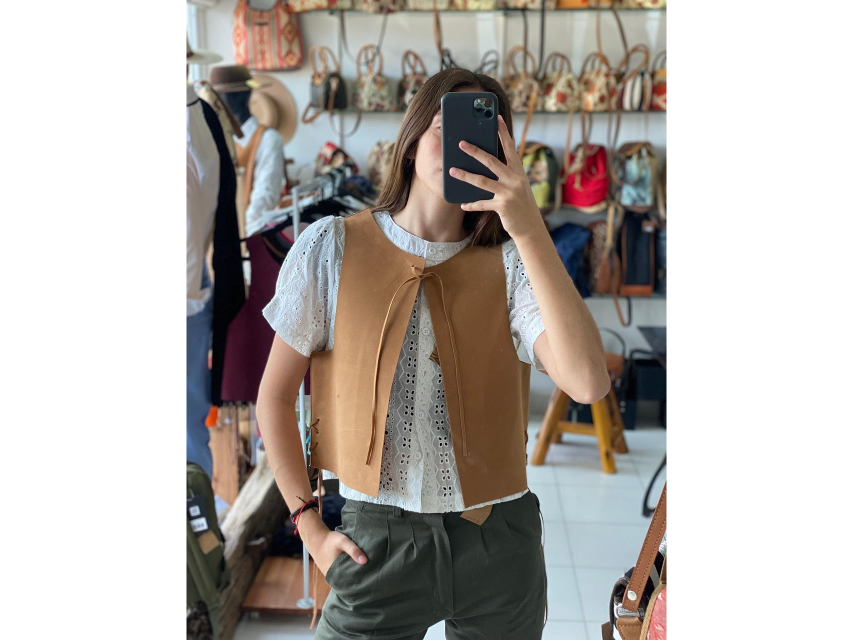 Chaleco cuero Compartir Presentaciones Seleccioná las opciones que quieras.Marron$26.000Fusica$26.000Verde$26.000Celeste$26.000Bordo$26.000Beige$26.000 Complementos para tu pedido Agregá items adicionales a tu pedido. Talles Seleccioná las opciones que quieras.SML Observaciones 0 / 150 Encontrá productos relacionados INDUMENTARIA (4)