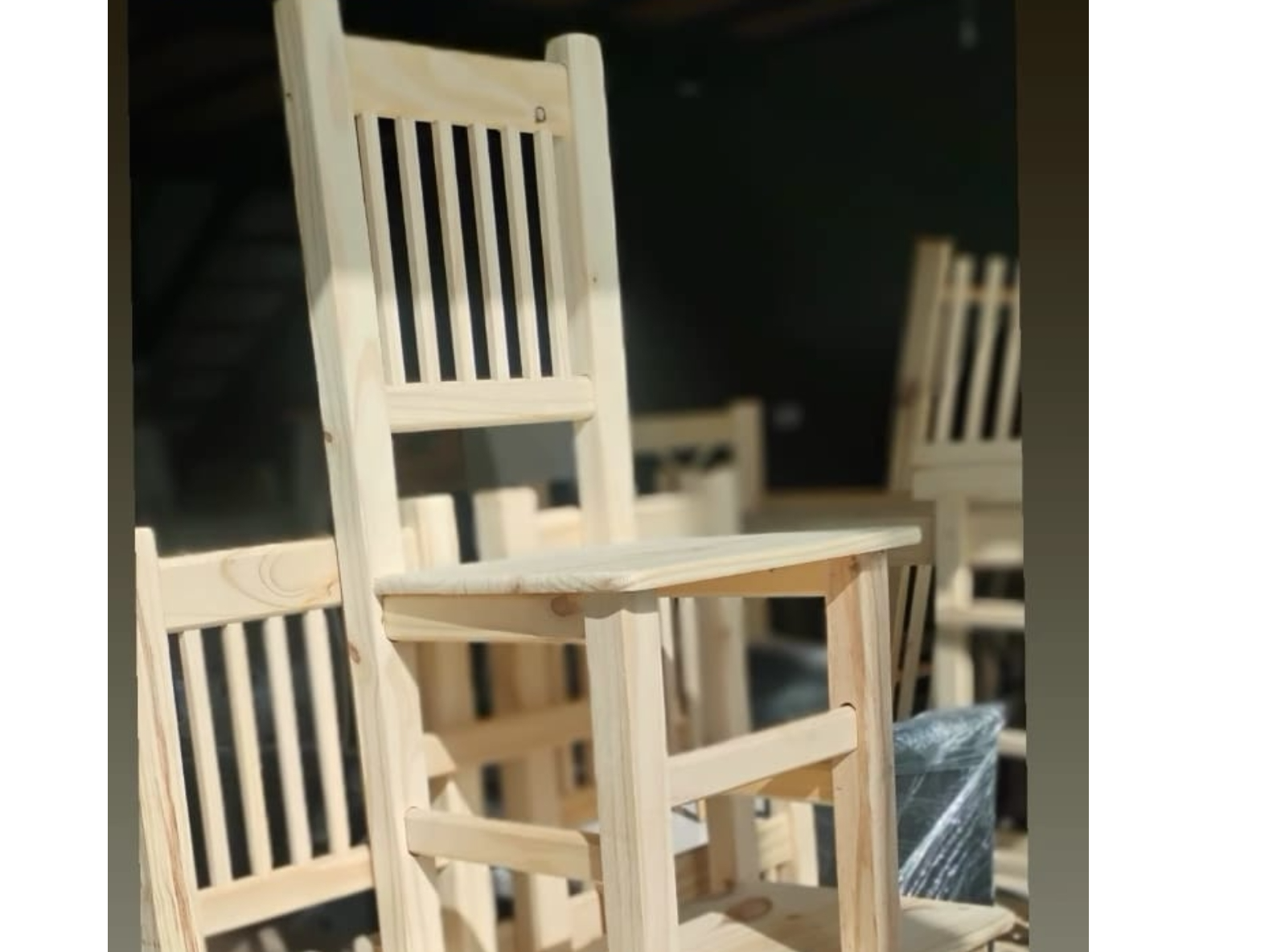 SILLAS DE PINOSILLAS ESPIGADAS ,ENCASTRADAS , ENCOLADAS PINO MACIZO BUENA CALIDAD SECADO A HORNO Presentaciones Seleccioná 100 opciones.SILLAS DE PINO X1$19.350$12.900 33% OFF SILLAS DE PINO X4$74.400$51.600 31% OFF SILLAS DE PINO X6$116.100$77.400 33% OFF SILLAS DE PINO X8$154.800$103.200 33% OFF SILLAS DE PINO X10$194.850$129.900 33% OFF Complementos para tu pedido Agregá items adicionales a tu pedido. TERMINACIONES Seleccioná las opciones que quieras.LUSTRADO CAMPO El mueble se masilla ,lija y se lustra color a elección (PERILLAS INCLUIDAS) $35.000LAQUEADO El mueble se masilla,lija ,lustra y se laquea color madera a elección. ( PERILLAS INCLUIDAS) $59.000PATINADO El mueble se masilla ,lija y se patina efecto envejecido ( PERILLAS INCLUIDAS) $55.000 Observaciones 0 / 150