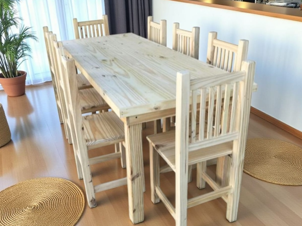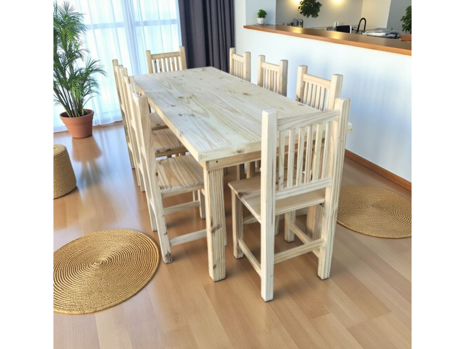 JUEGOS DE COMEDOR DE PINO MACISOJUEGOS MESAS MACIZA ENCOLADA Y ENCASTRADA SILLAS MODELO HINDÚ ,ENCASTRADAS ,ENCOLADAS ,ESPIGADAS Y CEPILLADAS (la mesa de entrega desarmada para un mejor traslado ,fácil armado) Presentaciones Seleccioná 15 opciones.MESA 120*80 PINO MACISO CON 4 SILLAS HINDÚ$171.750$114.500 33% OFF MESA 160*80 PINO MACISO CON 6 SILLAS HINDÚ$211.500$141.000 33% OFF MESA 200*80 PINO MACISO CON 8 SILLAS$270.300$180.200 33% OFF MESA 200*80 PINO MACISO CON 10 SILLAS$297.000$198.000 33% OFF Complementos para tu pedido Agregá items adicionales a tu pedido. TERMINACIONES Seleccioná las opciones que quieras.LUSTRADO CAMPO El mueble se masilla ,lija y se lustra color a elección (PERILLAS INCLUIDAS) $35.000LAQUEADO El mueble se masilla,lija ,lustra y se laquea color madera a elección. ( PERILLAS INCLUIDAS) $59.000PATINADO El mueble se masilla ,lija y se patina efecto envejecido ( PERILLAS INCLUIDAS) $55.000 Observaciones 0 / 150