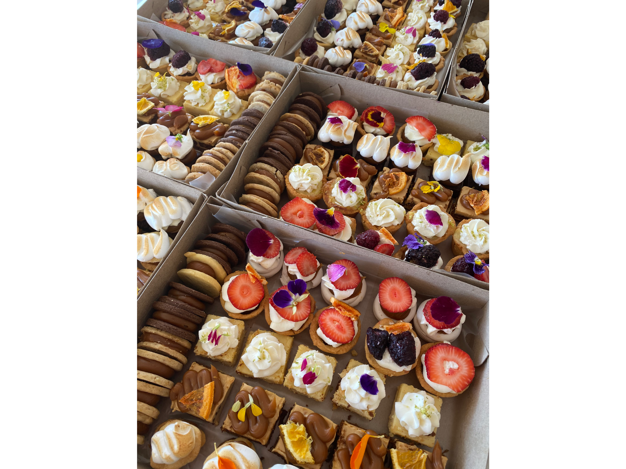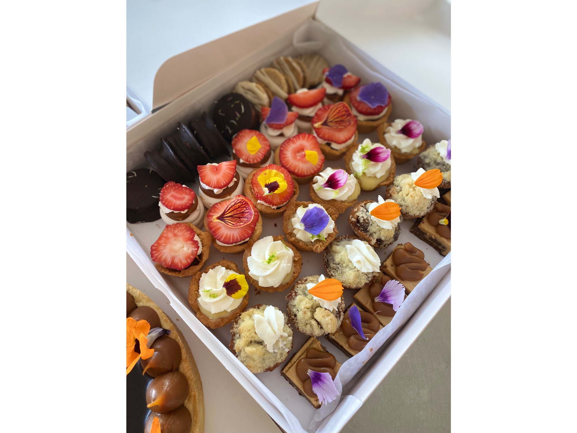 CAJA DEGUSTACION DE MINI PASTELERIA 34 UNIDADES. (RINDE PARA 10-12 PERSONAS) TIENE: