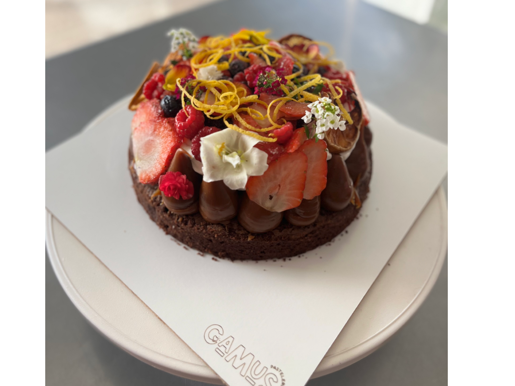 TORTA BROWNIE FRUTOS ROJOS Compartir Base de brownie , capa de dulce de leche , crema chantilly , mermelada casera de frutos rojos y frutos rojos , decorada con cascaritas y flores Presentaciones Seleccioná una opción.18 cm de diamtro , 12-15 porciones$27.00022 cm de diamtro , 20-22 porciones porciones$40.000 Observaciones 0 / 150