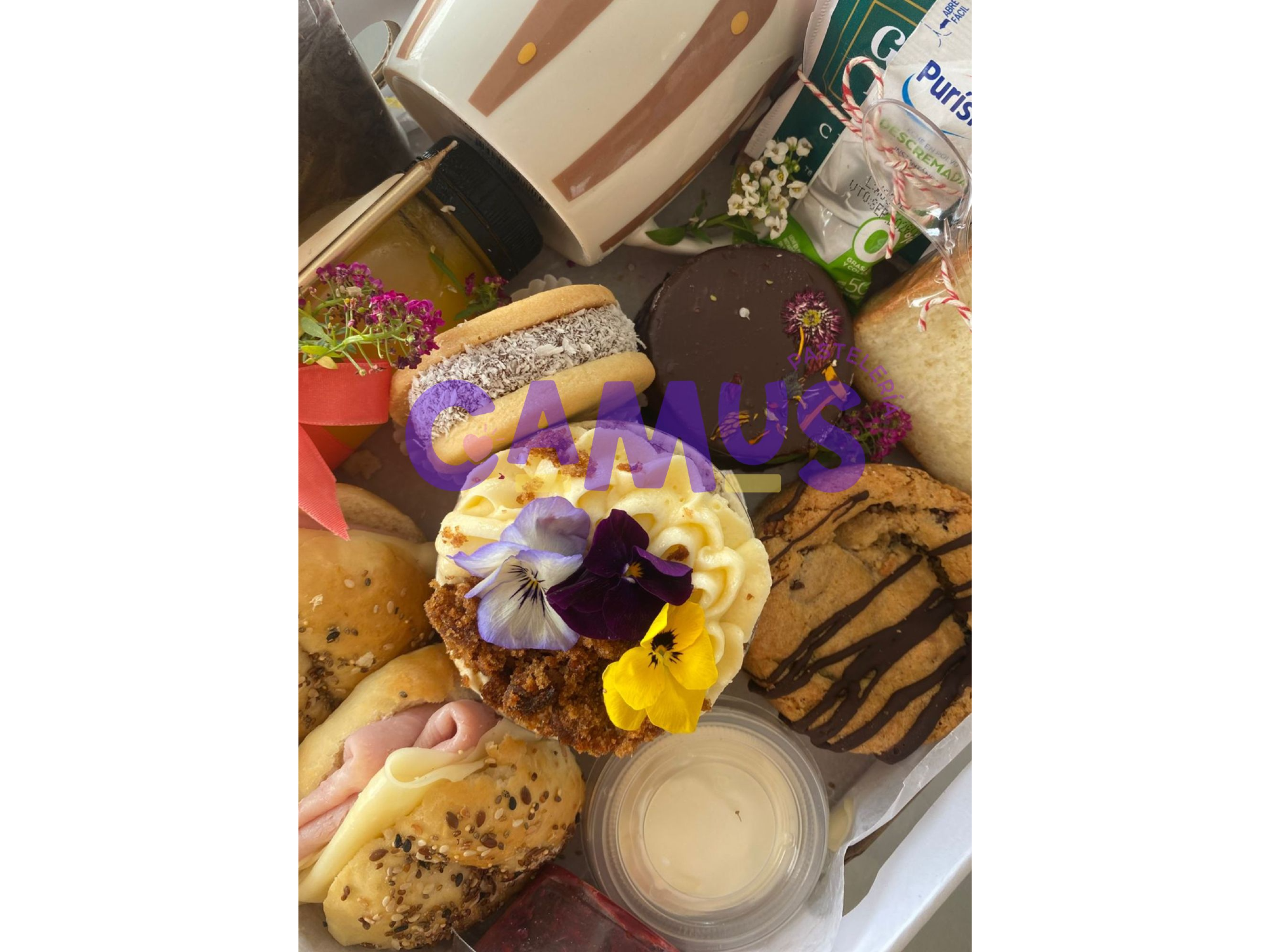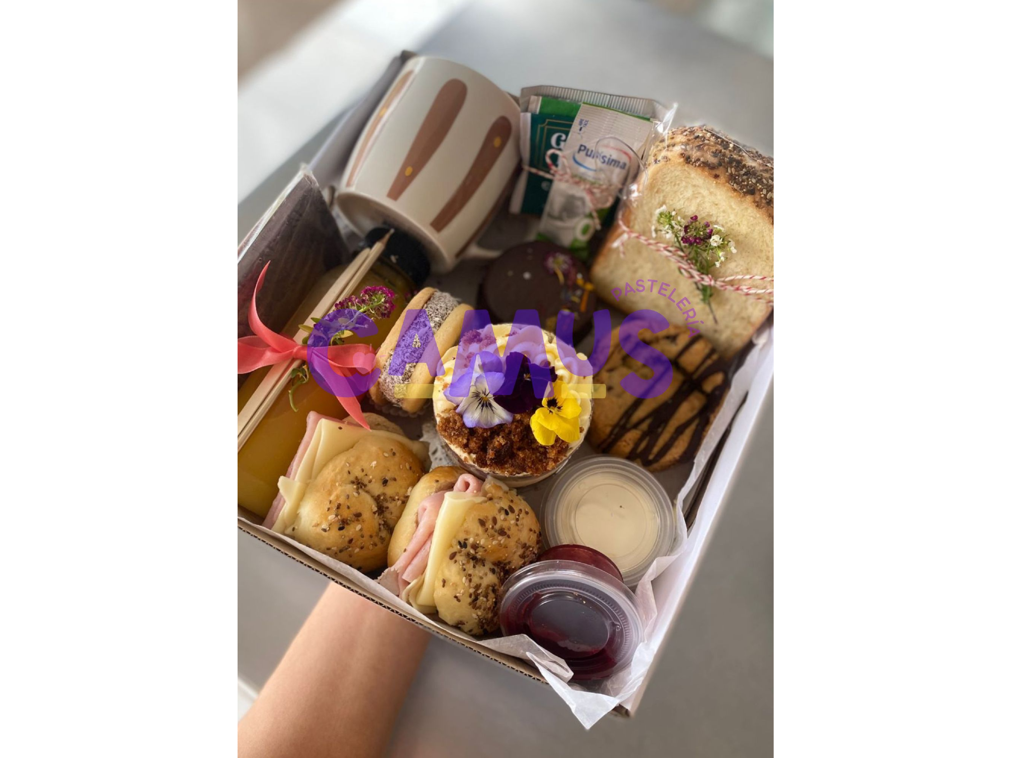 BOX ROMANTICO Compartir Incluye: • Jugo de naranja • 2 sándwiches de jamón y queso en pan casero • 1 cookie americana • 1 alfajor de maicena • 1 alfajor bañado en chocolate • 1 tableta rellena de chocolate • 1 mini torta (variedad base: Chocotorta; podés cambiarla por otra con costo adicional) • Pan caserito con mermelada artesanal y queso crema • Vaso térmico descartable (podés cambiar a taza con costo adicional) • Infusiones y removedor Decorada con mini pensmientos , flores comestibles y alisos sobre las opciones del desayuno Extras opcionales: • Se puede agregar vela con costo adiciona EN EL CASO DE QUE NO HAYA EN STOCK 1 O VARIOS DE LOS PRODUCTOS SE CAMBIAN POR ALGO EXACTAMENTE DEL MISMO VALOR$40.000 Personalizá tu selección Las siguientes opciones aplican para cada producto agregado. Elegí la bebida Seleccioná una opción. Obligatorio Jugo de naranjaLimonada$2.000Cerveza Según stock disponible $2.300Lata de coca cola$1.500Lata de Sprite$1.500Chocolatada$2.500 Elegi tu mini torta Seleccioná una opción. Obligatorio chochotortaRogel$2.500red velvet$2.500carrot cake$2.500key lime pie$2.500brownie fr rojos$2.500 BENTO CAKE Seleccioná una opción. Obligatorio SIN BENTO CAKEBENTO FELIZ CUMPLE Bizcochuelo de vainilla , relleno de dulce de leche y cubierta de buttercream. Con frase " feliz cumple " deco simple y color blanco $8.500BENTO "TE AMO" Bizcochuelo de vainilla , relleno de dulce de leche y cubierta de buttercream. Con frase " TE AMO " deco simple y color blanco $8.900BENTO FLORES Bizcochuelo de vainilla , relleno de dulce de leche y cubierta de buttercream. Deco en color blanco y flores comestibles $9.500 Kit cumpleaños Seleccioná las opciones que quieras.SIN KIT CUMPLEAÑOSVela simple$1.200Vengala$2.400Vela + Vengala$3.500Vela y topper feliz cumple$2.000Globo metalzado$2.000 OTROS EXTRAS Seleccioná hasta 2 opciones.SIN EXTRAInfusiones varias$1.000Vaso termico$7.000Taza de cerámica varios modelos Podés consultarnos las opciones de diseño disponibles $7.500Mate más bombilla$7.000 Observaciones 0 / 150