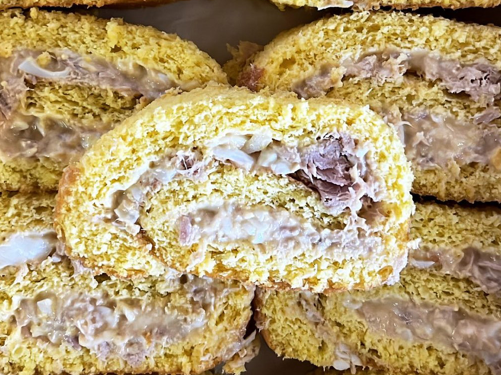 Pionono Compartir Pedidos con 48hs de anticipación. Pionono súper esponjoso / se entrega cortado y son 15 rodajas. Presentaciones Seleccioná una opción.Jamon, queso, lechuga y tomate$18.800Pastita de atun, con aceitunas y huevo$18.800Pastita de huevo y pepinillos en vinagre caseros$18.800Pastita de roquefort y nueces$18.800 Observaciones 0 / 150