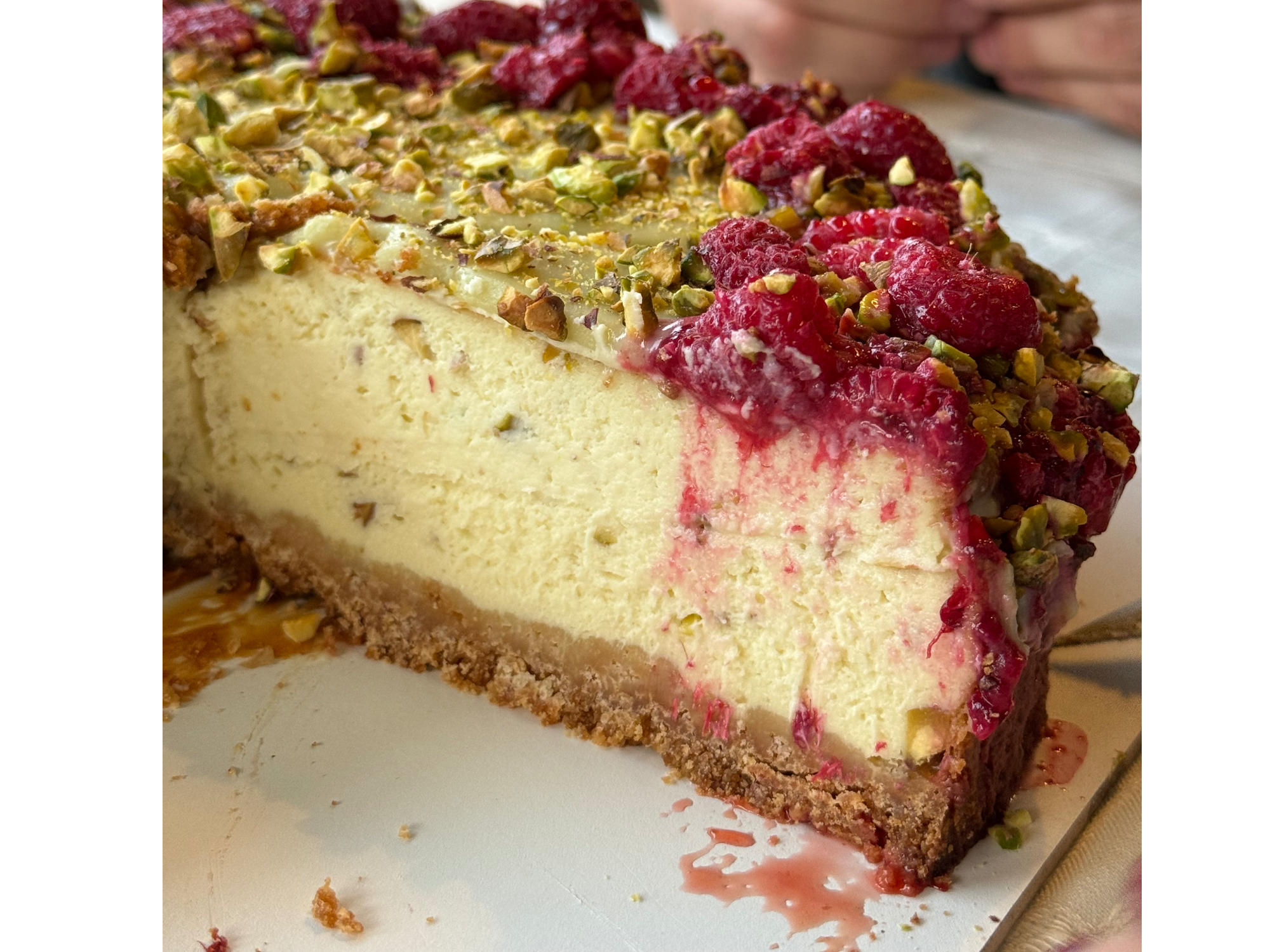 Cheescake Pistacho y frambuesa Compartir Pedidos con 72hs de anticipación, Presentaciones Seleccioná una opción.20cm de diámetro rinde 15/20 personas $68.80024 cm de diámetro rinde 25/30 personas $75.000 Observaciones 0 / 150