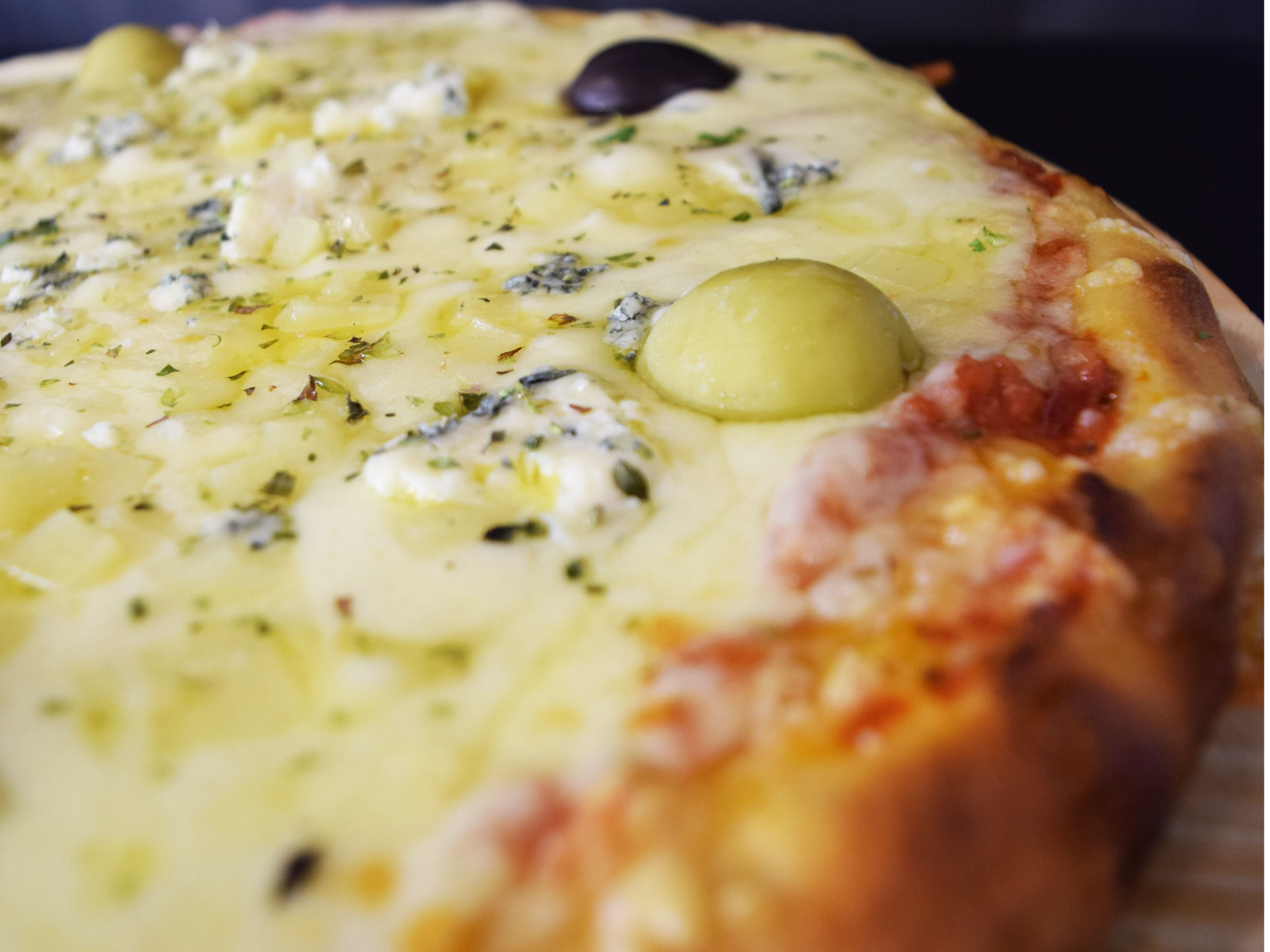 Cuatro Queso Compartir por WhatsApp Copiar enlace Masa fermentada 48hs en frío, 300 gramos de Muzzarella, roquefort, parmesano, reggianito salsa de tomate, aceitunas y chimichurri pizzero$26.000 Complementos para tu pedido Agregá items adicionales a tu pedido. Podes elegir mitad Seleccioná hasta 1 opción.MuzzaCalabresaFugazzaEspecialJamón crudo y rúculaNapolitana Bebida Seleccioná las opciones que quieras.Coca Cola 1.75L$6.000 Observaciones 0 / 150