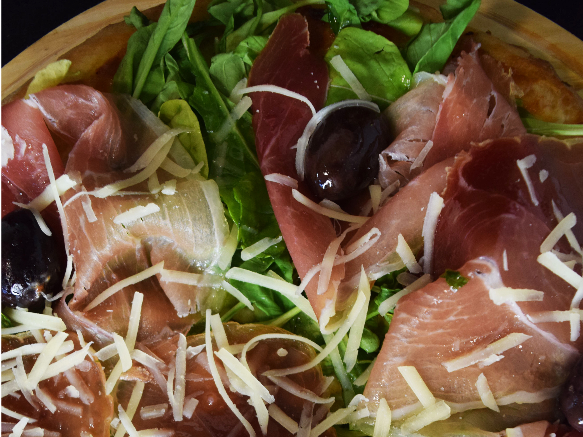Jamón Crudo y Rúcula Compartir por WhatsApp Copiar enlace Masa fermentada 48hs en frío, 300 gramos de Muzzarella, salsa de tomate, jamón crudo, rúcula, aceitunas y chimichurri pizzero$18.000 Complementos para tu pedido Agregá items adicionales a tu pedido. Podes elegir mitad Seleccioná hasta 1 opción.CalabresaEspecialFugazzaMuzzaNapolitana Bebida Seleccioná las opciones que quieras.Coca Cola 1.75L$6.000 Observaciones 0 / 150