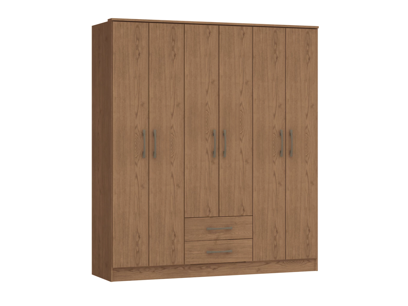 - 6 puertas, 2 cajones, 7 estantes internos y barral para colgar.