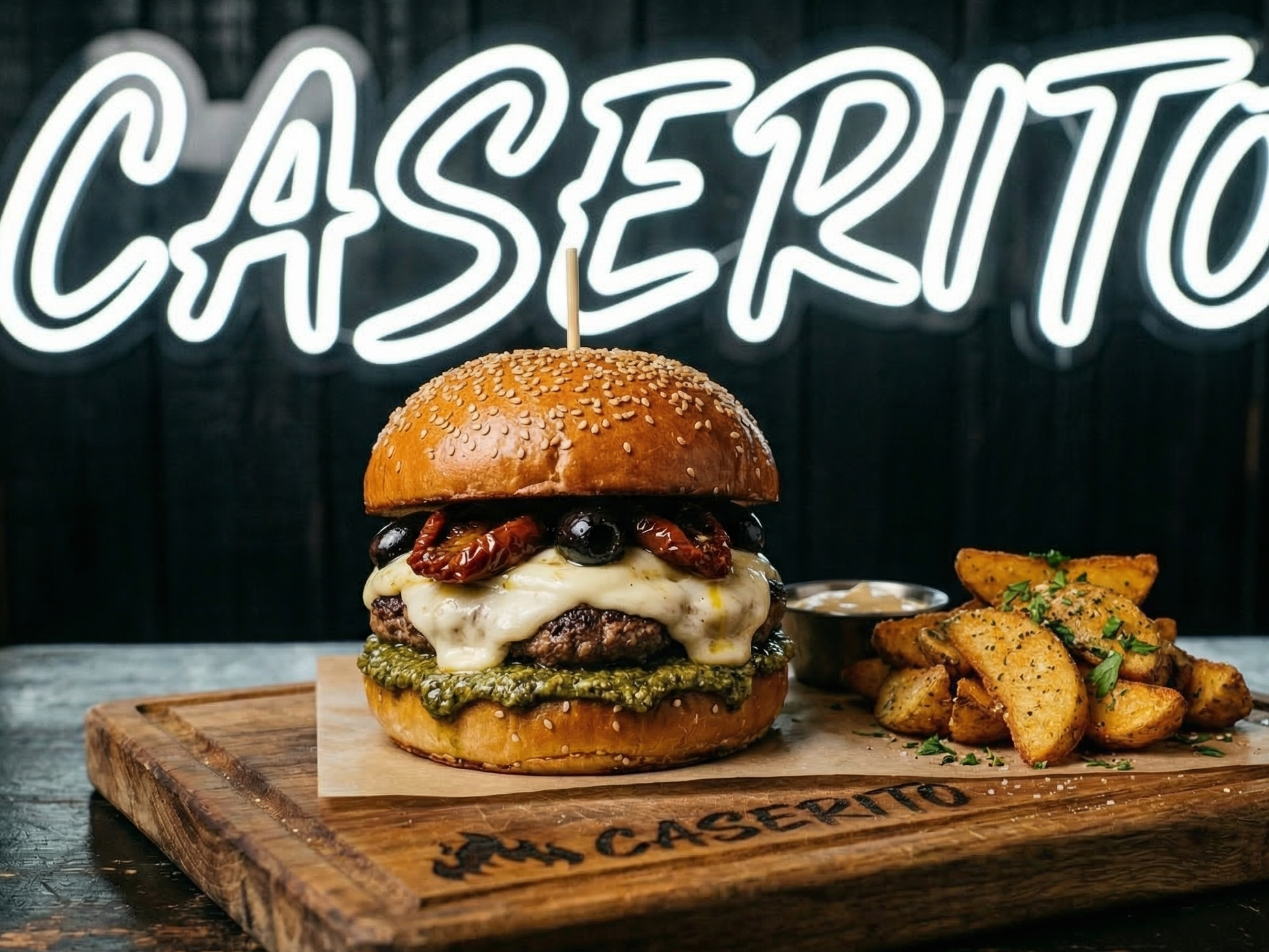 Caprichosa Compartir por WhatsApp Copiar enlace Medallón de Carne - Aderezo de Albahaca - Muzarella - Tomates Secos y Aceitunas.$17.000$14.900 12% OFF Personalizá tu selección Las siguientes opciones aplican para cada producto agregado. Adicionales Seleccioná las opciones que quieras.Extra Pepino$1.000Extra Huevo Huevo $1.000Extra Cheddar Queso CHeddar $1.000Extra Cebolla Caramelizada Cebolla Caramelizada $1.000Extra Bacon Bacon $1.000Medallon Extra Medallon de Carne $3.000Extra Tomate Tomate $1.000Extra Muzarella Muzarella $1.000Extra Roquefort Queso Roquefort $2.000Extra Picante Picante $1.000 Papas Guarnicion Seleccioná las opciones que quieras.Extra Papas Papas Extra (doble guarnicion) $2.000Papas con Cheddar Salsa Cheddar $1.500 Observaciones 0 / 150 Encontrá productos relacionados HAMBURGUESAS (32)