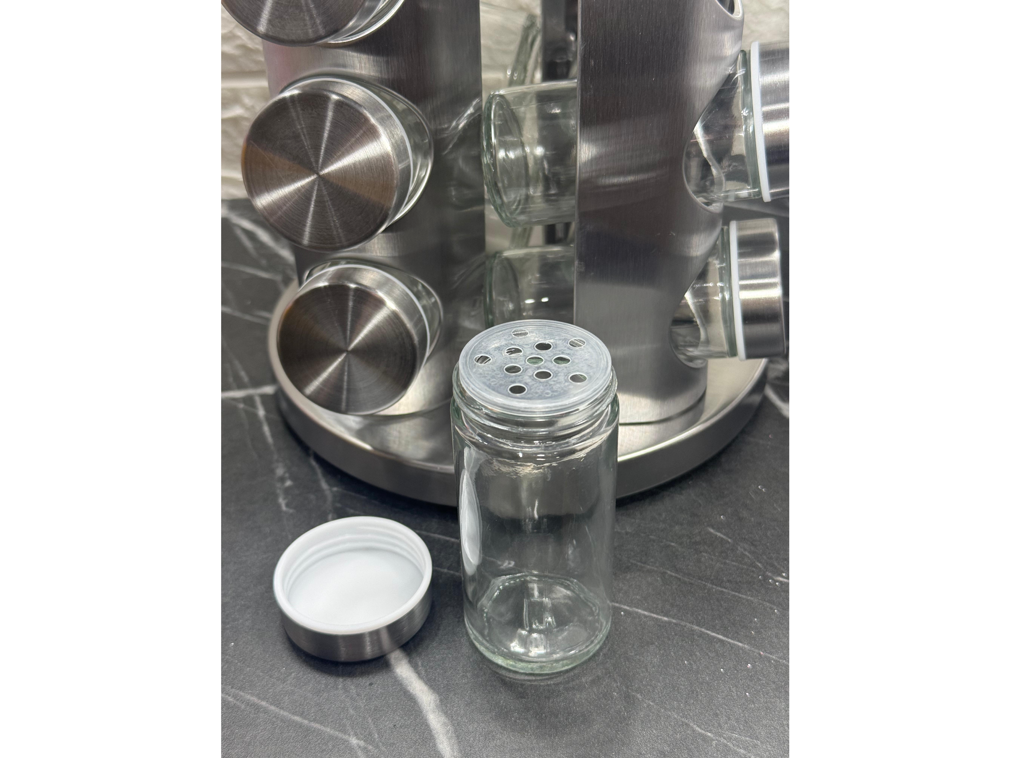 Especiero de 12 piezas Compartir por WhatsApp Copiar enlace ✨Que hermoso!!! 😍 *Especiero Giratorio* ▪️Acero inoxidable con acabado brillante ▪️12 frascos de vidrio con tapas metálicas ▪️Base giratoria para fácil acceso ▪️Organización de especias y condimentos en la cocina Presentaciones Seleccioná una opción.Unidad$23.000X2$42.000$40.000 5% OFF Observaciones 0 / 150