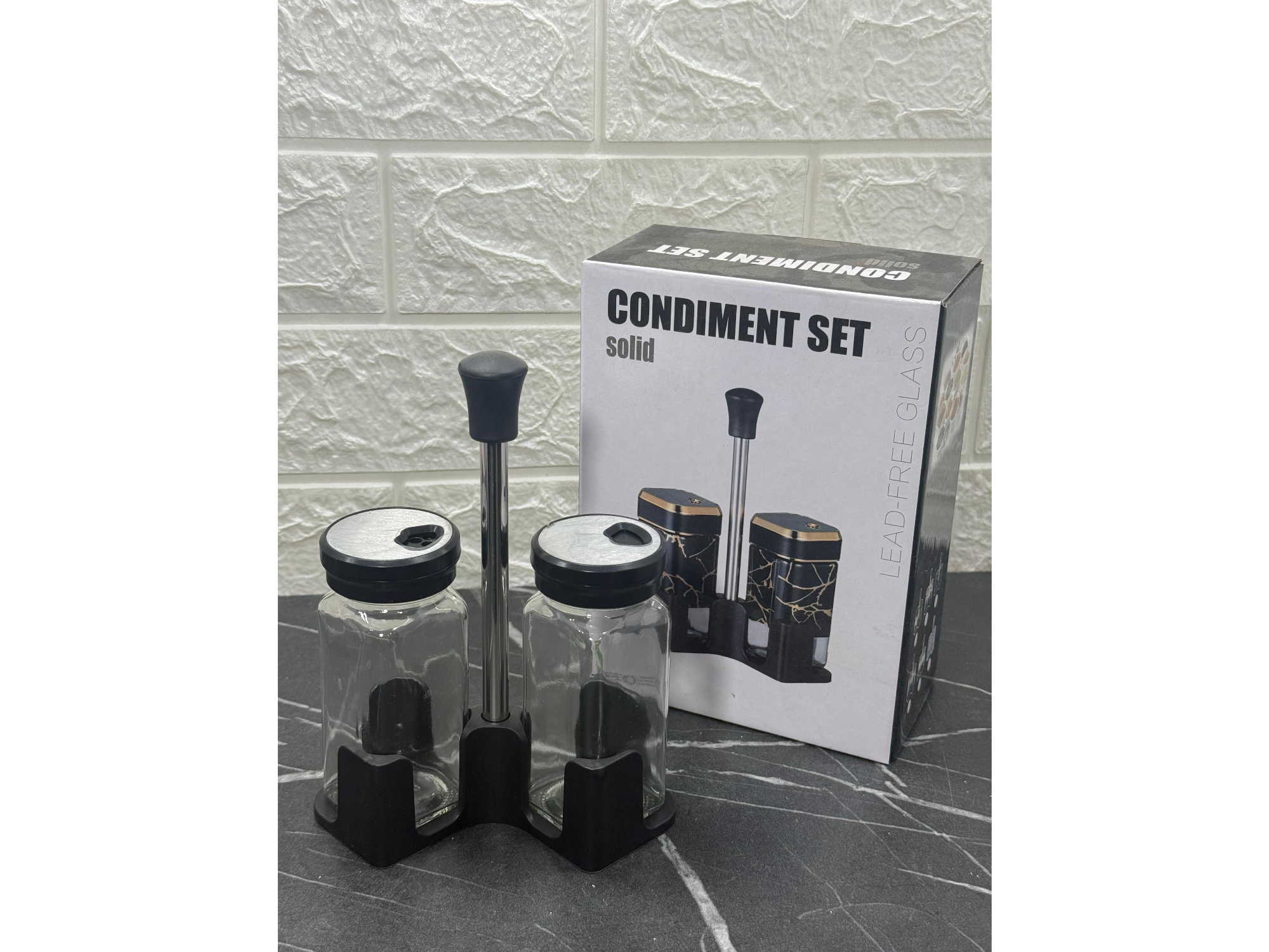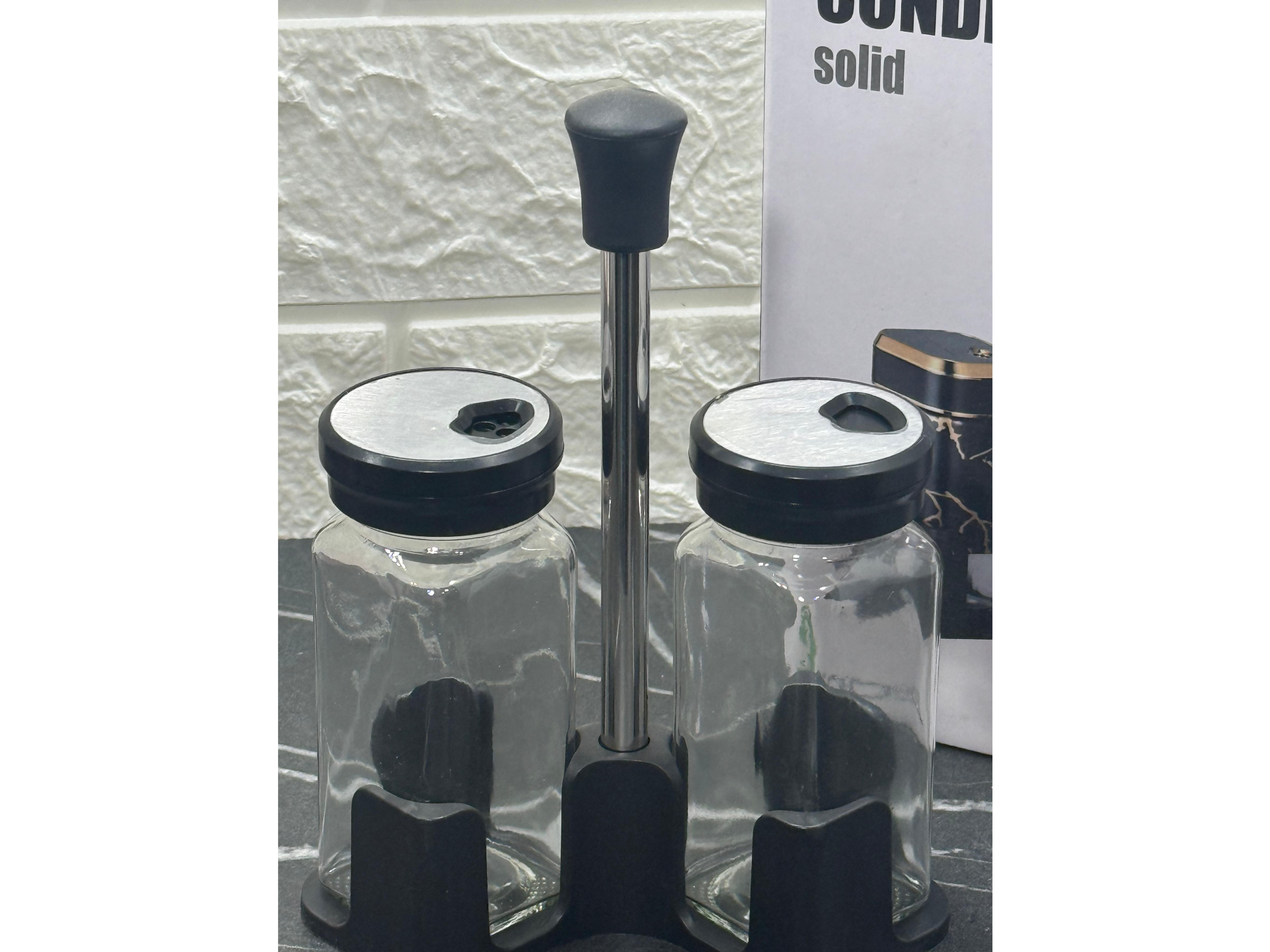▪️Material: vidrio transparente con tapas negras y soporte plástico resistente