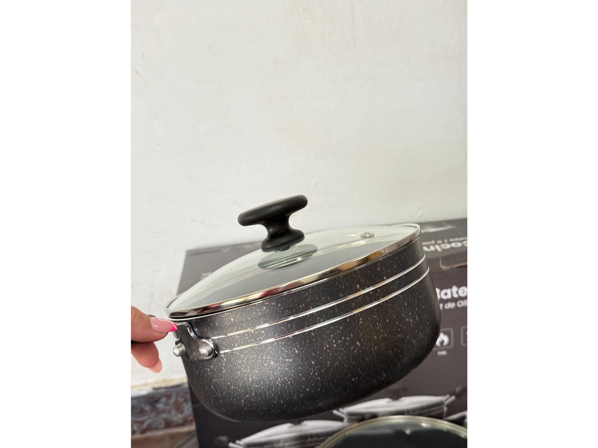 Bateria de cocina Om 9 piezas Compartir por WhatsApp Copiar enlace *Batería de cocina OM de 9 piezas* ▪️Material antiadherente: evita que los alimentos se peguen ▪️Diseño moderno tipo piedra: resistente y elegante ▪️Incluye tapas de vidrio con salida de vapor ▪️Asas ergonómicas: cómodas y seguras ▪️Distribución uniforme del calor ▪️Fácil limpieza y mantenimiento ▪️Apta para uso diario en todo tipo de preparaciones$85.000 Observaciones 0 / 150