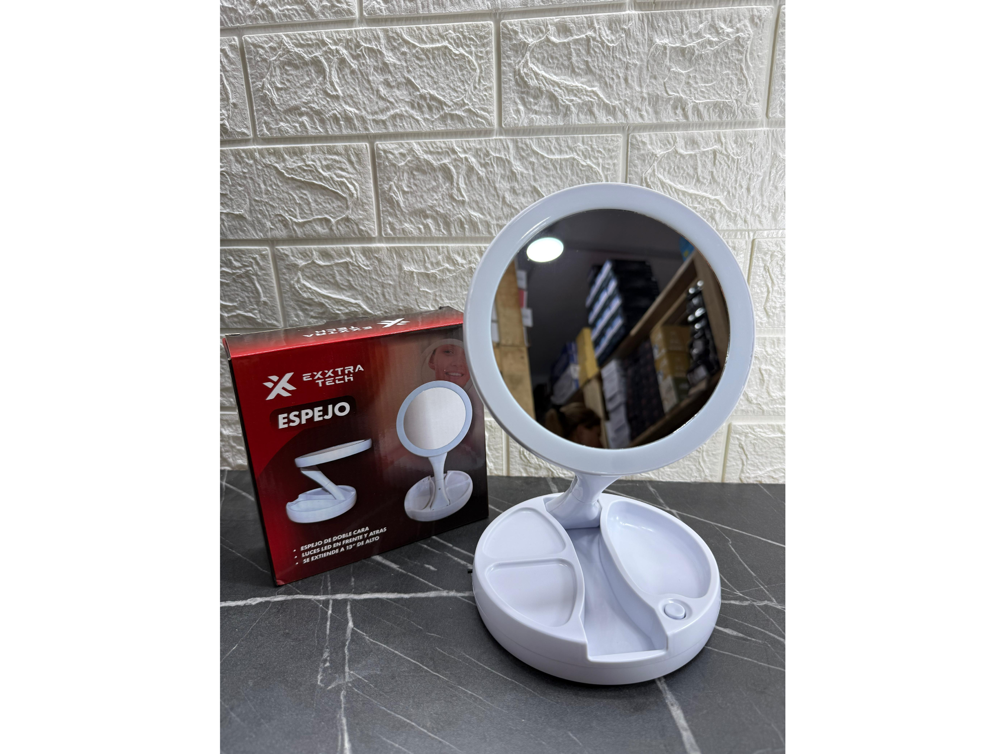Espejo led doble cara Compartir por WhatsApp Copiar enlace *🪞Espejo doble cara con luz led* ▪️aumento de un lado ▪️funciona a pilas o conexión usb ▪️espacio para bijouterie💍 Presentaciones Seleccioná una opción.Unidad$8.500X2$15.000 Observaciones 0 / 150
