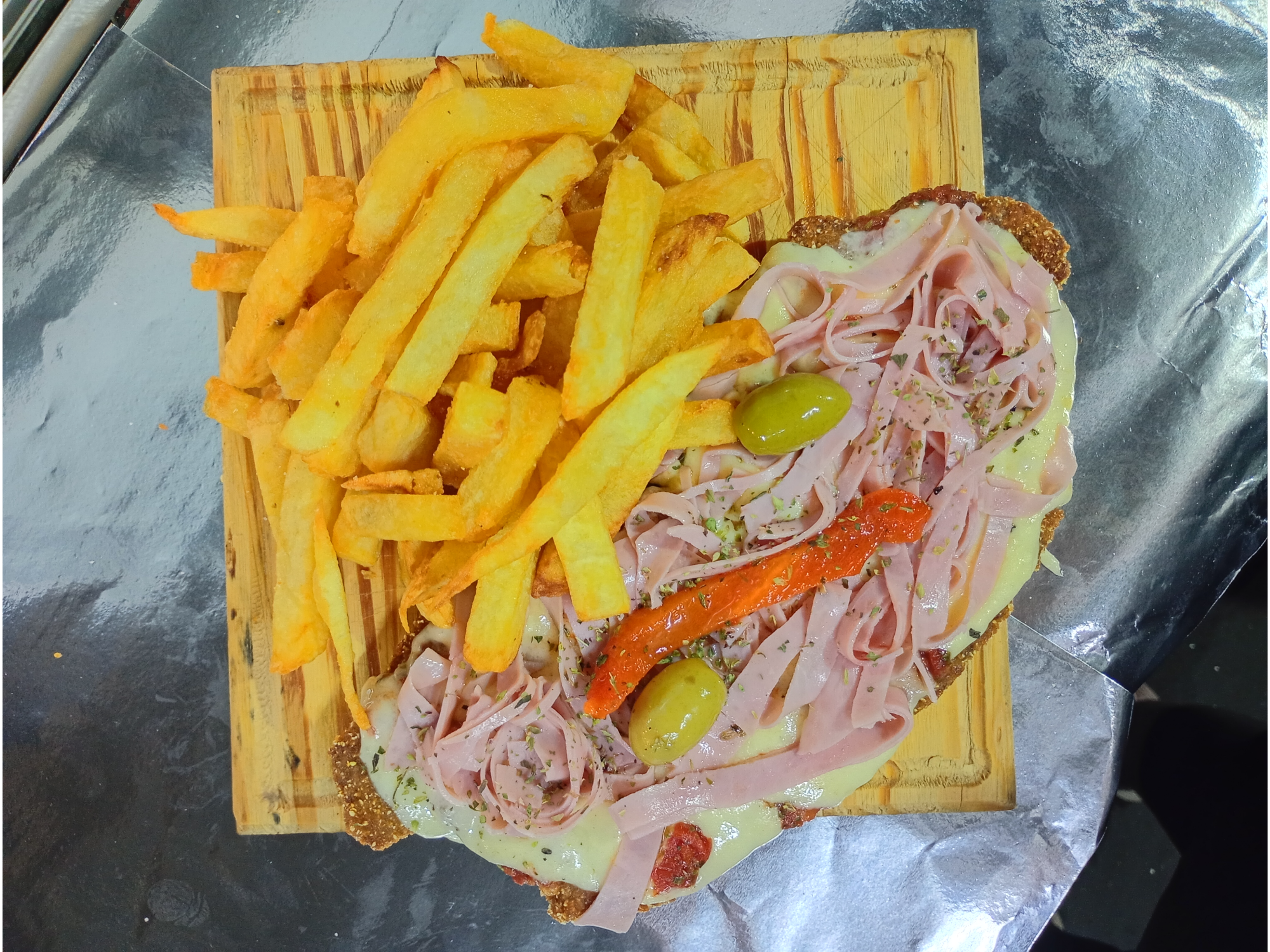 Milanesa napolitana al plato con papas fritas Compartir por WhatsApp Copiar enlace Milanesa de nalga, salsa, muzzarella, jamón cocido y guarnición de papas fritas.$22.500 Observaciones 0 / 150