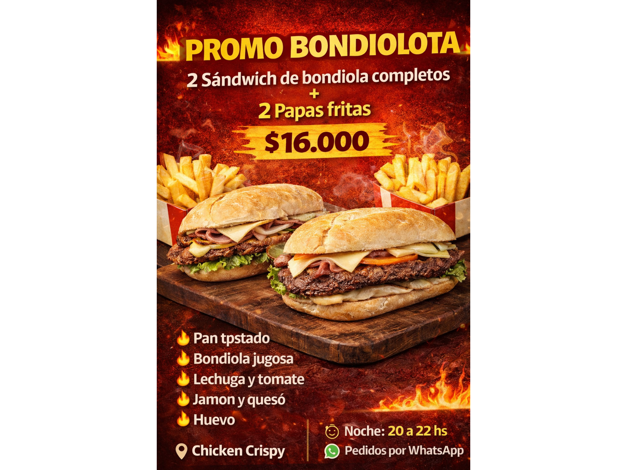 Promos Compartir por WhatsApp Copiar enlace Promo bondiolota $24.000$16.000 33% OFF Promo crispy $25.000$17.000 32% OFF Promo crispy $62.000$45.000 27% OFF