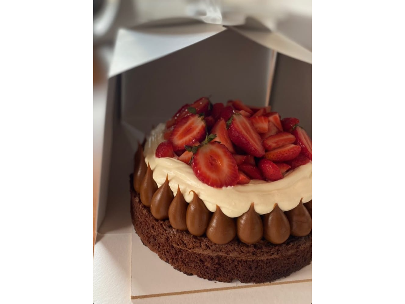 Base de brownie denso y bien chocolatoso, cubierta con una capa suave de dulce de leche o crema (según la versión que elijas). Terminada con frutillas frescas por encima, que aportan color, frescura y un contraste perfecto con lo dulce del brownie. Un postre irresistible para los amantes del chocolate y lo frutal.
