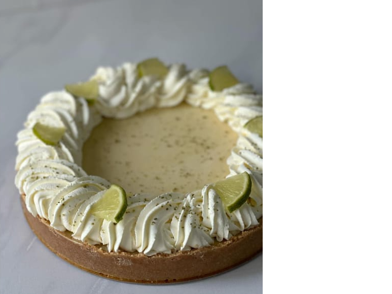 Key lime pie Compartir Tarta cítrica y refrescante, con base crocante de galletas, crema de lima suave y una terminación brillante. Dulce, ácida y perfecta para los que aman los postres frescos. Presentaciones Seleccioná las opciones que quieras.Key lime pie 18cm$33.000Key lime pie 20cm$42.000Key lime pie 24cm$61.000Key lime pie 28cm$50.000 Observaciones 0 / 150