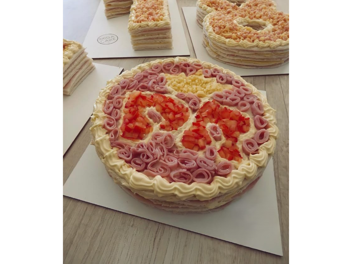 Torta salada con decoración Compartir Presentaciones Seleccioná las opciones que quieras.Torta salada mini 10x5cm$7.000Torta salada mini 15x10cm$18.000Torta salada 20x20cm$33.000Torta salada 30x25cm$45.000Torta salada 30x30cm$58.000Torta salada 40x30cm$71.000 Personalizá tu selección Las siguientes opciones aplican para cada producto agregado. Rellenos Seleccioná las opciones que quieras.Jamon y quesoSalame y quesoJamon, queso y huevo$2.000Salame, queso y huevo$2.000Salame,queso y aceituna$3.000Jamon, queso y aceituna$3.000Jamon, queso, huevo, lechuga, tomate$4.000Salame, queso, lechuga, tomate, huevo$4.000Pollo, tomate, huevo$6.500Pollo, tomate, queso, jamon$7.000Jamon crudo, queso, tomate, rucula$6.500Queso, tomate, albahacaZanahoria,choclo,tomate,huevo,queso$5.000 Observaciones 0 / 150