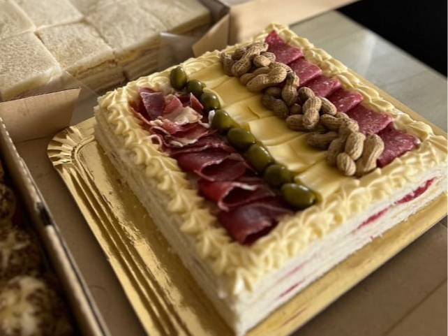 Torta salada con decoracion picada Compartir Tortas Saladas – Sabrosas, frescas y listas para compartir Elegir el relleno - Decoracion y tamaño Presentaciones Seleccioná las opciones que quieras.Torta salada mini 10x5 para 1 persona $4.000Torta salada 15x10 para 3/4 personas $15.000Torta salada 20x20 8/10 personas $30.000Torta salada 25 x 25 cm para 15 personas $35.000Torta 30 x 25 cm para 20 personas $42.000Torta 30 x 30 cm 25 personas $48.000Torta 35 x 30 cm 30 personas $55.000Torta 40 x 30 cm 40 personas $68.000 Personalizá tu selección Las siguientes opciones aplican para cada producto agregado. Rellenos Seleccioná las opciones que quieras.Jamon y quesoSalame y quesoJamon, queso y huevo$2.000Salame, queso y huevo$2.000Salame,queso y aceituna$3.000Jamon, queso y aceituna$3.000Jamon, queso, huevo, lechuga, tomate$4.000Salame, queso, lechuga, tomate, huevo$4.000Pollo, tomate, huevo$6.500Pollo, tomate, queso, jamon$7.000Jamon crudo, queso, tomate, rucula$6.500Queso, tomate, albahacaZanahoria,choclo,tomate,huevo,queso$5.000 Observaciones 0 / 150
