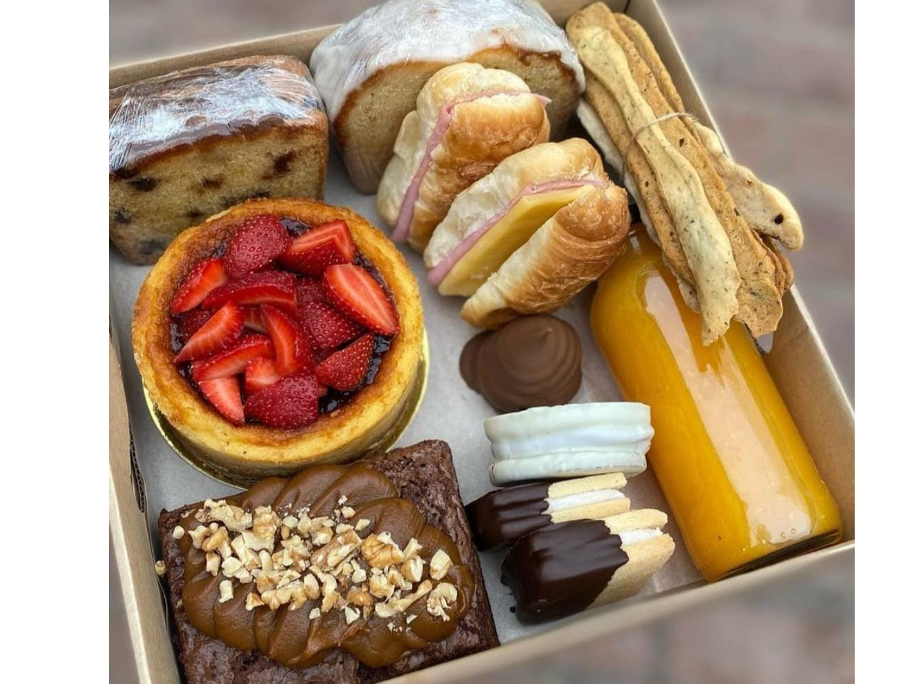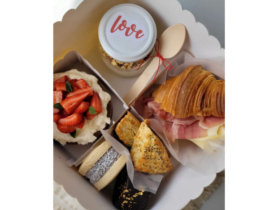 Desayuno personalizado - Compartir Armá tu desayuno como quieras Elegí los productos que más te gusten y ajustalos a tu presupuesto. Podés armar un desayuno dulce, salado o mixto, con la combinación de sabores que prefieras. Cada desayuno es 100% personalizable para que sea único. Reservas con 24 hs de anticipación como minimo. Sabado y domingo con 48hs de anticipacion Consultá la disponibilidad del día antes de realizar tu pedido. Presentaciones Seleccioná las opciones que quieras.Medialunas dulces simples$1.500Porcion de budin$2.300Alfajor$2.100Conito oreo$1.100Cookie tipo americana$3.500Alfacookie$3.200Brownie con dulce nueces o oreo Rectangulo - elegir topping $4.000Shot dulce chico$2.800Shot dulce grande$3.850Panqueques con dulce de leche 2 unidades $3.500Muffins$3.200Mini tarta 10cm Elegir la opcion - $6.500Mini tarta 14cm$9.800Mini torta 14cm - 1 relleno - Bizcochuelo eleccion - $16.000Torta para 8/10 personas con el desayuno 1 relleno eleccion - bizcochuelo eleccion - Decoracion simple a eleccion - $32.000Medialuna salada simple$2.000Croissant$4.000Croissant Relleno$6.000Rollitos de jamon y queso$2.000Huevo revuelto$1.800Tostada saludable Tostada de pan integral - Queso crema - Palta - Tomate- Semilla chia $3.500Medialuna de jamon y queso/Mafalda/sacramento$3.500Chipa x6 u$3.800Sandwich de miga x2$2.500Scon de queso x3$3.200Pan ciabatta Elegir relleno $4.500Pan casero relleno Elegir relleno $4.500Alfajor roquefort$2.500Tostadas con dips Elegir dips $2.800Frutos secos$1.900Yogurt con granola y cereales$3.000Yogurt con fruta, cereales y granola$3.800Fruta fresca$2.500Ensalada de fruta$2.650Waffles simples x3$2.500Waffles torre relleno$4.500Sandwich de pan lactal x2u$4.000Bebida - Elegir opcion$3.000Bagels relleno Bagels - queso crema - queso - rucula - tomate - Bondiola - Huevo $3.950Grisines$1.500Scon de queso x4 redondo$3.950Scon de queso XL$3.200 Personalizá tu selección Las siguientes opciones aplican para cada producto agregado. Bizcochuelo torta Seleccioná una opción. Obligatorio ChocolateMarmoladoVainilla Porcion de Budin - Seleccionar sabor Seleccioná las opciones que quieras.Limon con amapolasChocolateVainillaRed velvet$800MarmoladoVainilla con chips Alfajor Seleccioná las opciones que quieras.NuezChocolateMaicenaChocolate blancoMembrillo Cookie americana Seleccioná las opciones que quieras.Vainilla con chipsChocolate con chipsRed velvet con chipsRellena nutella$1.000Rellena dulce de leche$500 Brownie con dulce de leche y Seleccioná las opciones que quieras.Nueces trituradasFrutillasOreo Shot dulce rellenos Seleccioná las opciones que quieras.ChocotortaOreoTiramisuCheesecakeFrutilla con cremaDurazno con crema Muffins sabor Seleccioná las opciones que quieras.MarmoladoVainillaChocolateRed velvet$500 Bebida Seleccioná las opciones que quieras.Jugo de naranja exprimidoChocolatadaLimonadaCoca cola 500ml$600Cerveza corona lata Lleva un valor adicional si el box no lo contiene - Si el box contiene cerveza no lleva adicional extra $1.000Coronita en botellita cerveza Lleva un adicional $1.300 Pan relleno/Cibiatta Seleccioná las opciones que quieras.JamonQuesoBondiolaHuevo$60RuculaLechugaTomateRoquefortSalameJamon crudo$200 Pan lactal Seleccioná las opciones que quieras.BondiolaJamon crudo$200LechugaQuesoRuculaJamonHuevo$60MayonesaQueso crema Relleno torta Seleccioná las opciones que quieras.Crema oreoDulce de leche con chipsDulce de lecheDulce de leche con merengueCrema con frutillasCrema con duraznoCrema nutella$3.500Crema con frutos rojosCrema cafeCrema chantilliCrema oreo con brownie$2.500Mantecol$3.500Block$3.500Lemon curd$4.000Pistachos$8.000Nuez$2.000Bon o bon$3.400 Opciones de mini tartas Seleccioná las opciones que quieras.ChocotortaCheesecakeChocooreoLemon pieTarta duraznoTarta frutillaRogelTarta de ricota y naranja$1.500Tarta de cocoTarta frutalTarta cabshaTarta coffeTarta Moka Observaciones 0 / 150