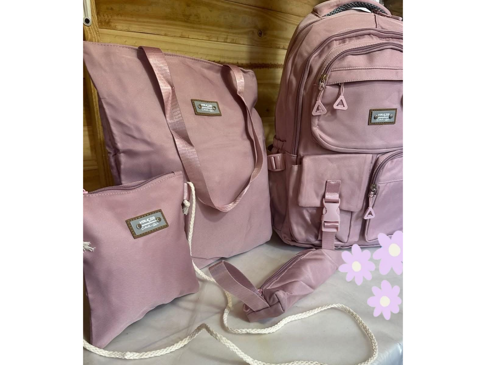 Mochila de 4 piezas Compartir por WhatsApp Copiar enlace Mochila de 4 piezas de mujer $27.000 cada una, llevando 3 o más artículos Contiene: 1 Mochila 1 Riñonera 1 bolso 1 cartuchera Presentaciones Seleccioná las opciones que quieras.Negro$27.000Lila$27.000Verde manzana$27.000Gris$27.000Rosa viejo$27.000Celeste$27.000 Observaciones 0 / 150