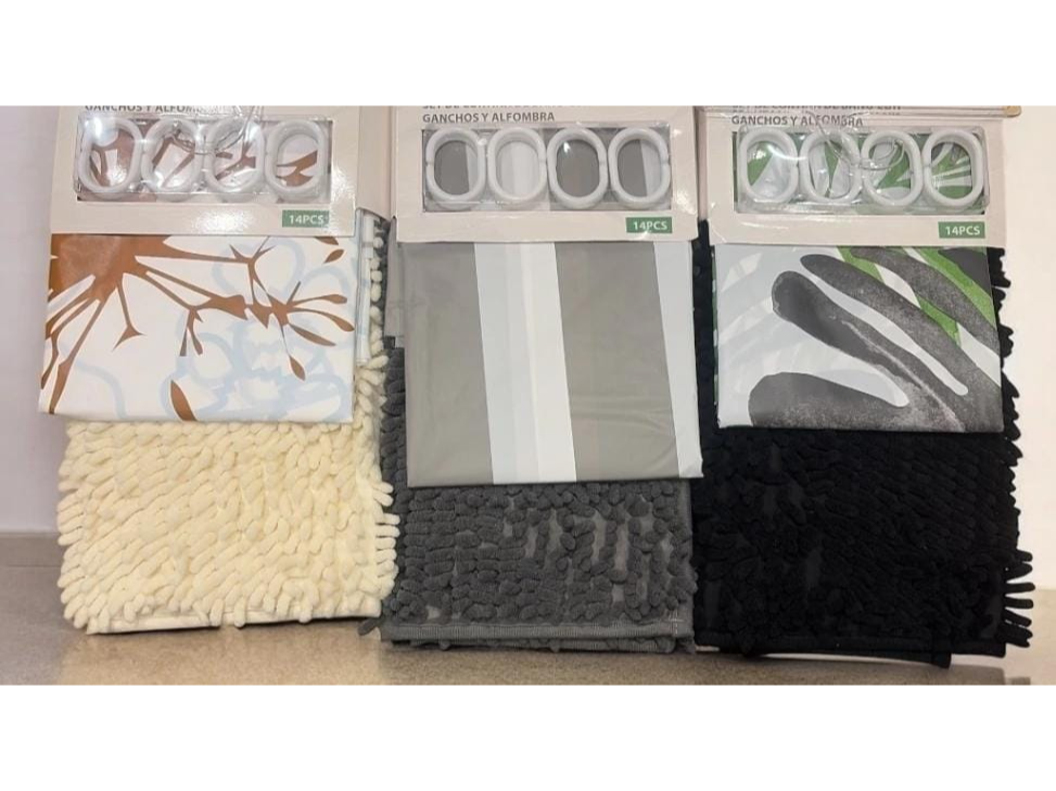 Cortina de baño + alfombra shaggy color gris oscuro Compartir por WhatsApp Copiar enlace Cortina de baño + alfombra shaggy $10.000 cada una, llevando 3 o más artículos Contiene: ● 1 Cortina de baño impermeable de 180×180cm. (PVC) ● 1 Alfombra shaggy de 40×60cm. ● 12 ganchos plásticos$10.000 Observaciones 0 / 150