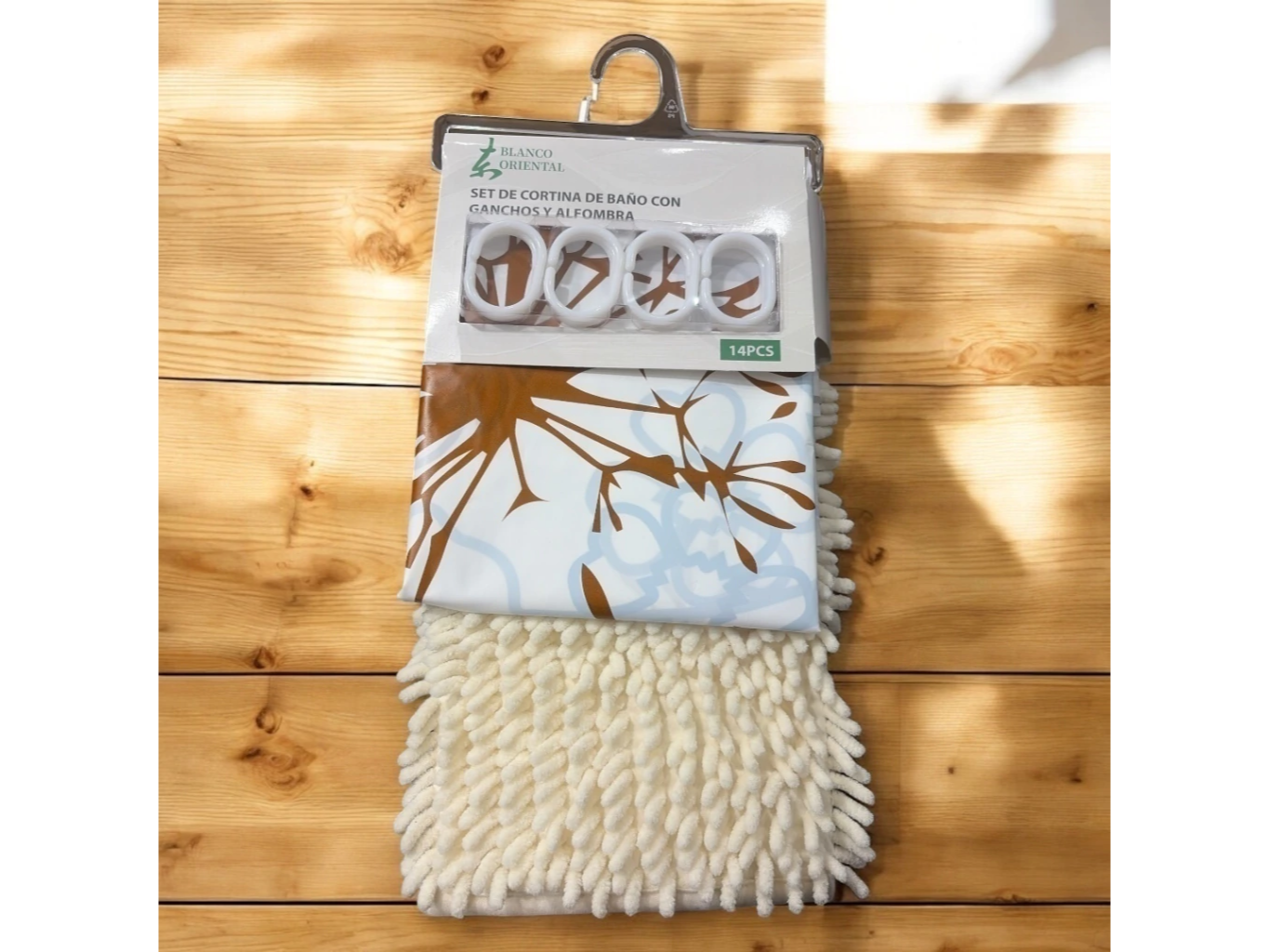 Cortina de baño + alfombra shaggy color beige Compartir por WhatsApp Copiar enlace Cortina de baño + alfombra shaggy $10.000 cada una, llevando 3 o más artículos Contiene: ● 1 Cortina de baño impermeable de 180×180cm. (PVC) ● 1 Alfombra shaggy de 40×60cm. ● 12 ganchos plásticos$10.000 Observaciones 0 / 150